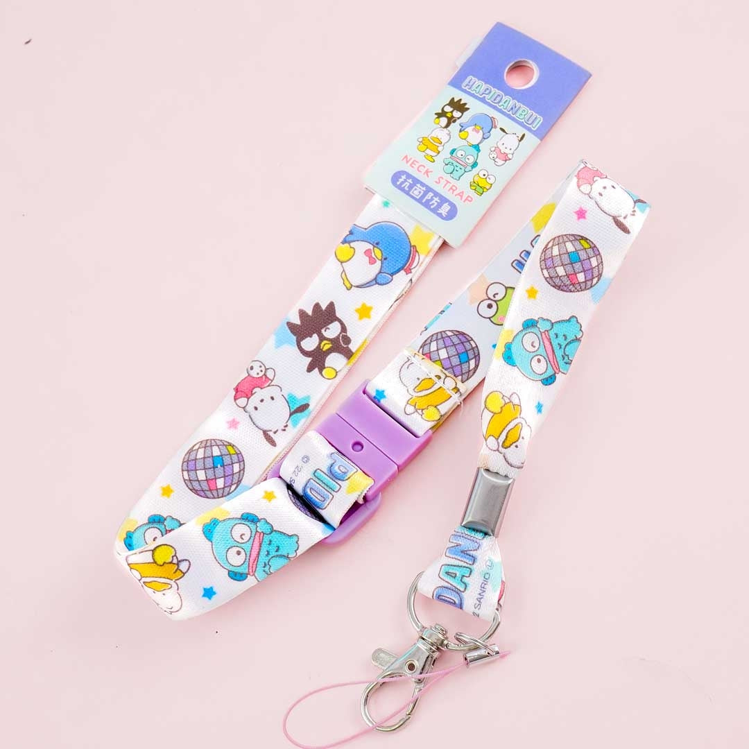 This super kawaii lanyard is covered in prints of the Hapidanbui gang having fun at the disco! It has a quick-release buckle, an adjustable strap, a metal clip, and a string loop. Use it to bring along your IDs and bus passes!