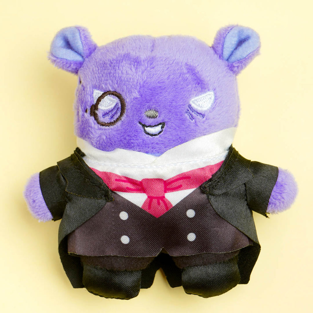Show your love for kawaii with your bestie when you pin this set of plushie badges to your jackets! It features Kuromi and Baku who are dressed for a formal dinner.