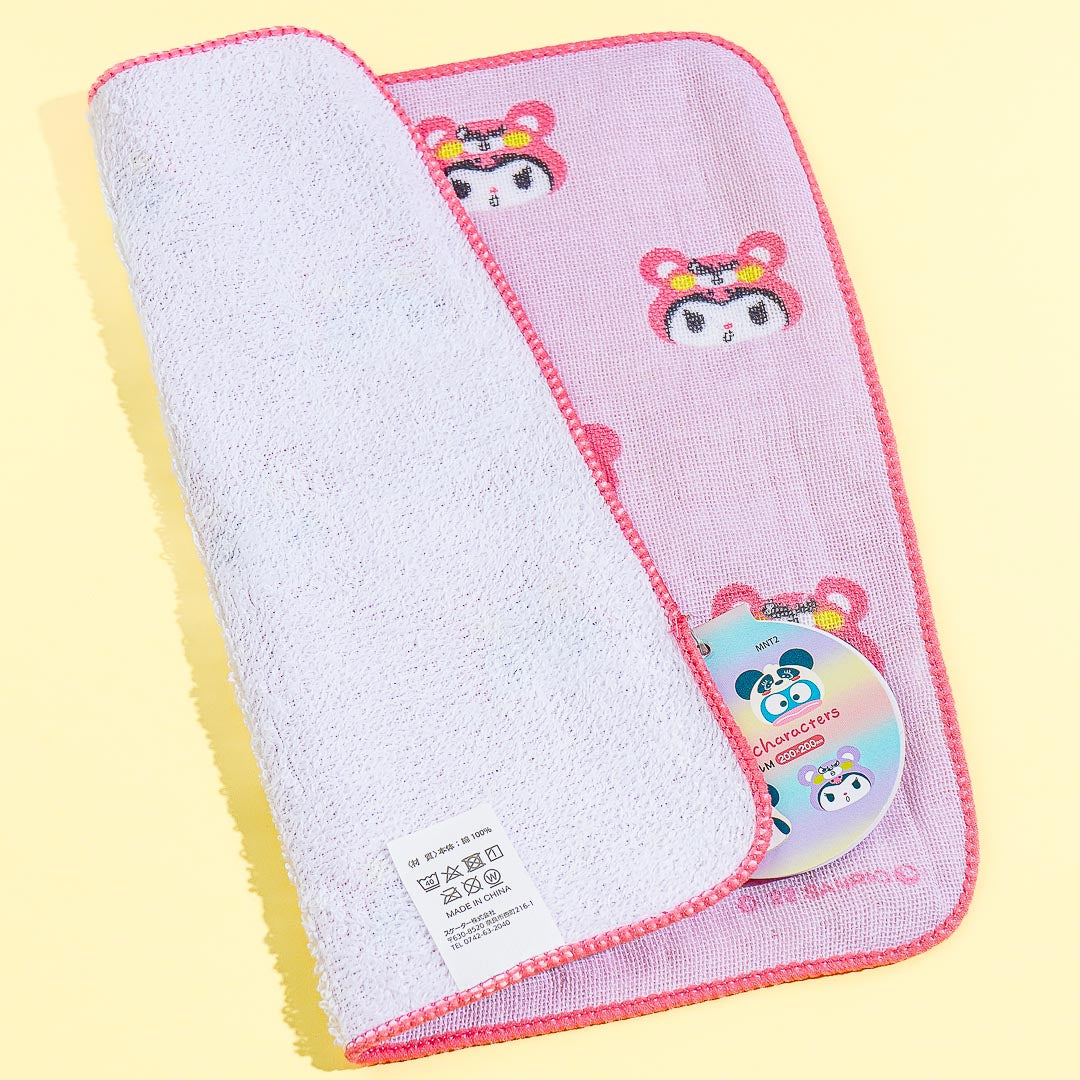 Stay nice and dry when you take this mini towel with you! It features cute prints of Kuromi wearing a bear headgear. This towel is made from 100% cotton so it's gentle on the skin.