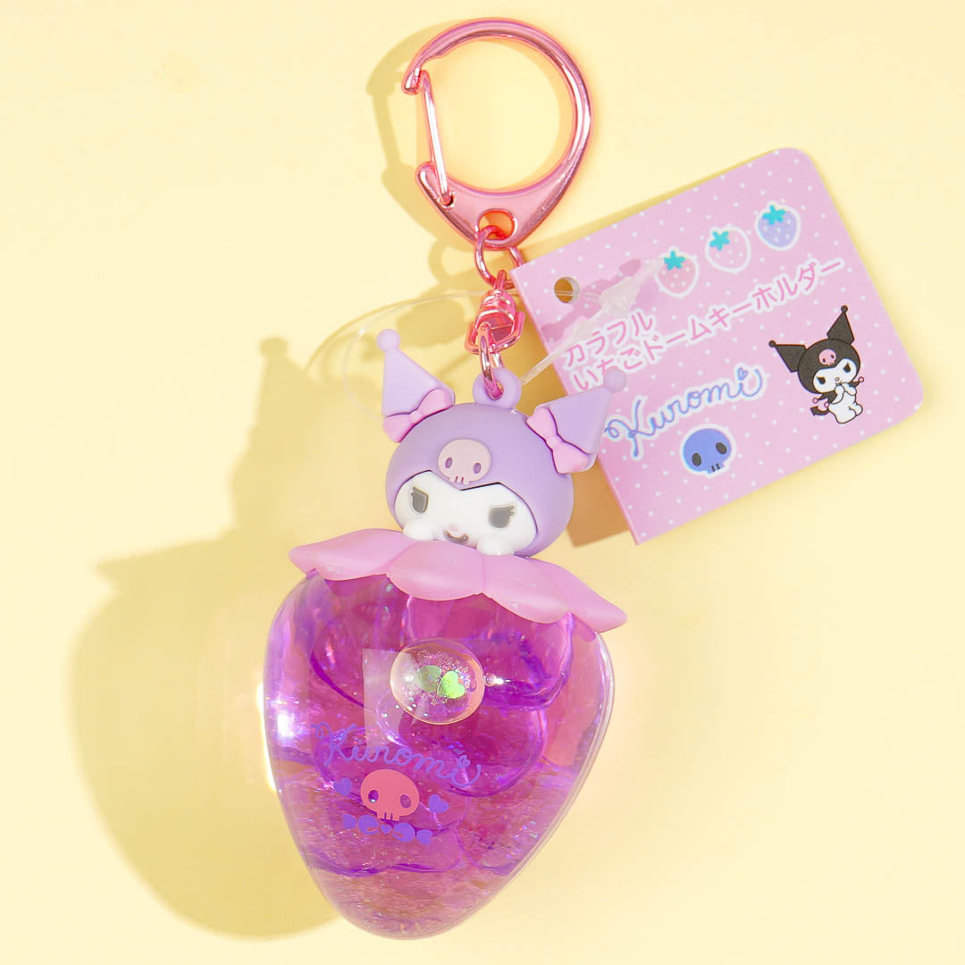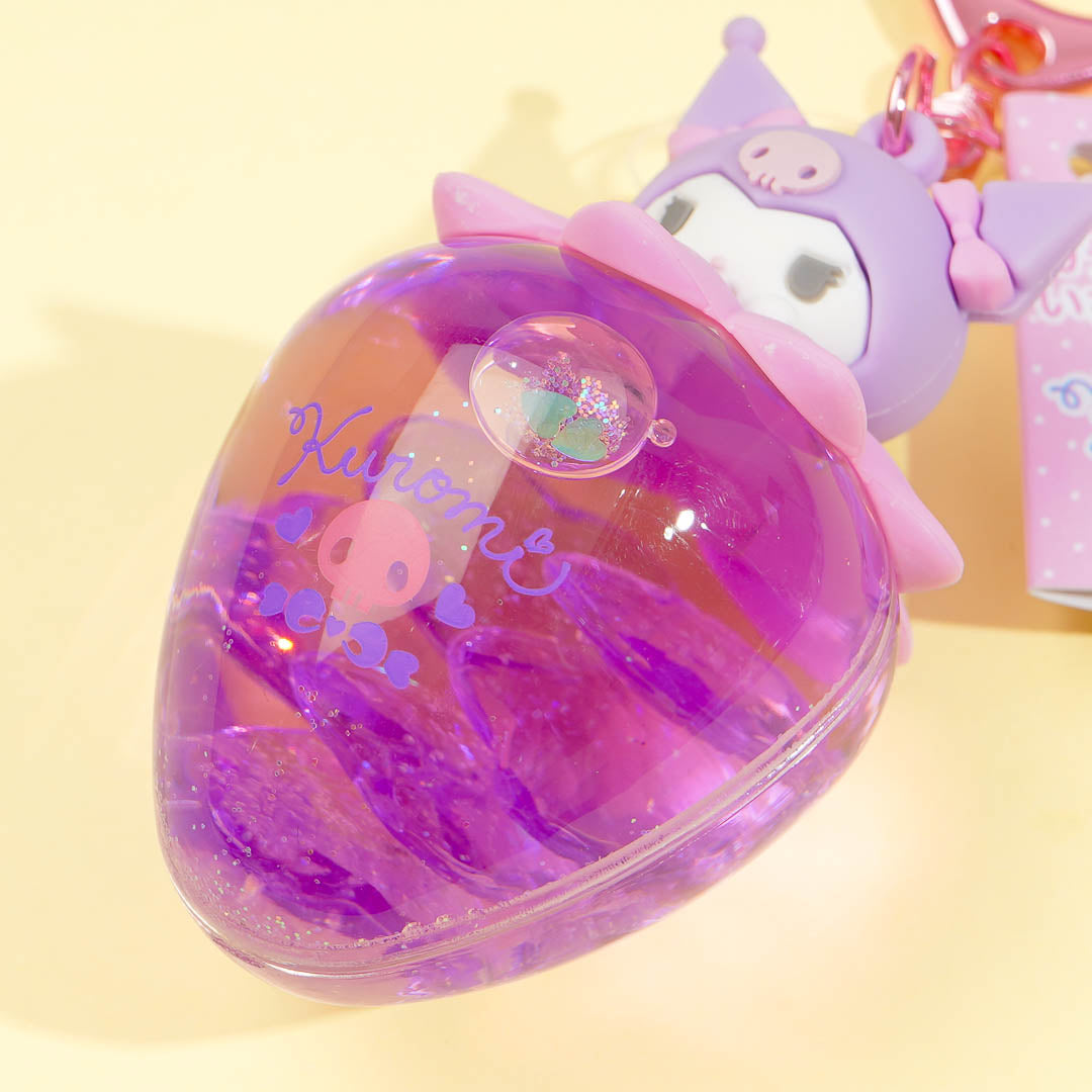 Make your purse or backpack extra cuter when you attach this strawberry-shaped charm! it features a Kuromi decor and is filled with water and glitter.