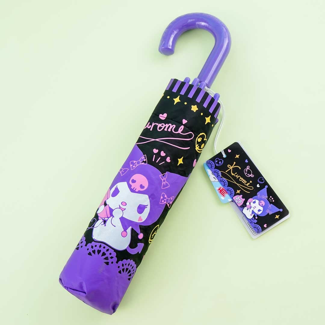 A cute portable umbrella featuring a print of Kuromi chatting on the phone