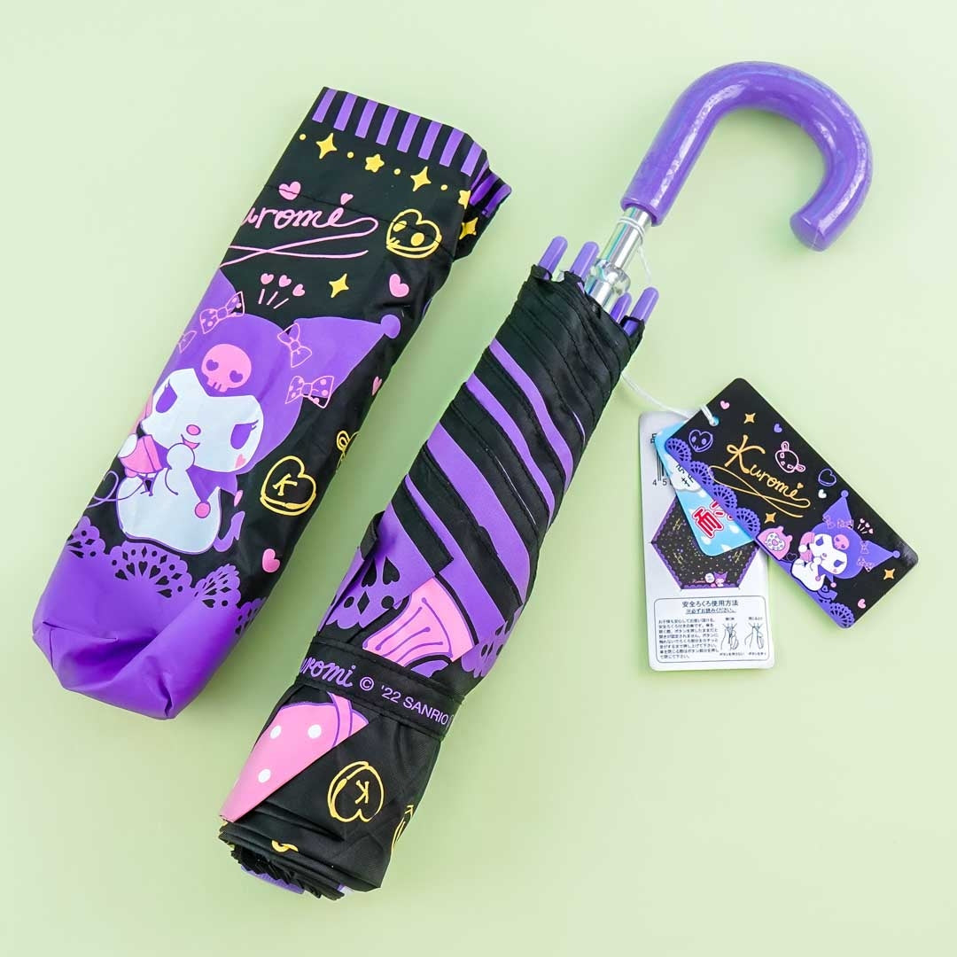 You never know when it's going to rain, so take this kawaii portable umbrella wherever you go! It's illustrated with Kuromi chatting on the phone. This umbrella has a u-shaped handle and a pouch for you to keep it in.