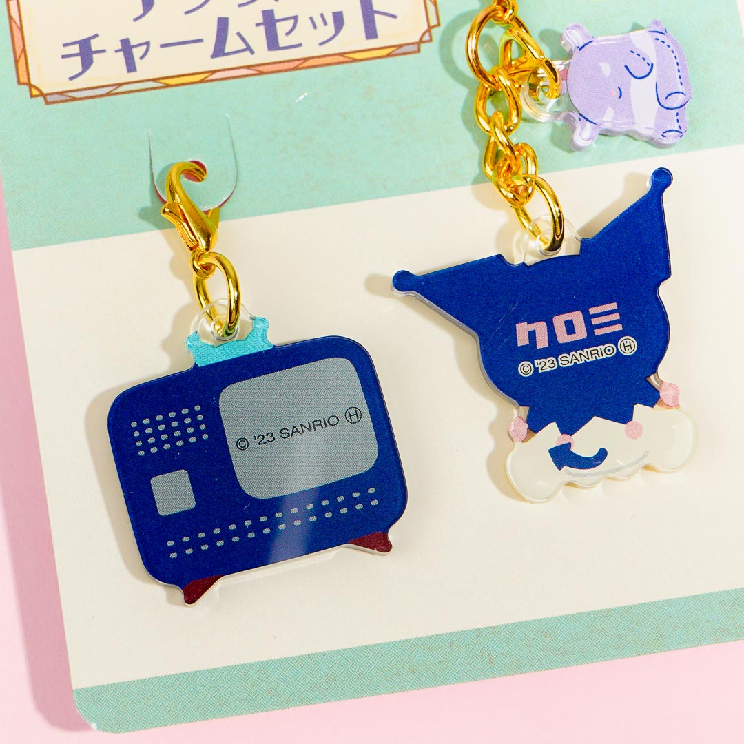 Decorate your school or work bag with this kawaii set! The acrylic charms have retro-inspired illustrations of Kuromi — one while on TV and the other with Baku, her tapir sidekick. You can also use attach this to your coat’s zipper pull.