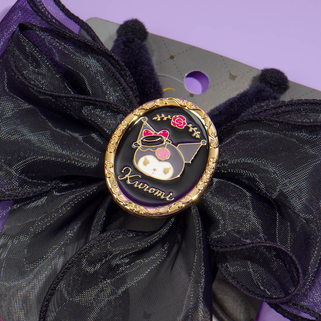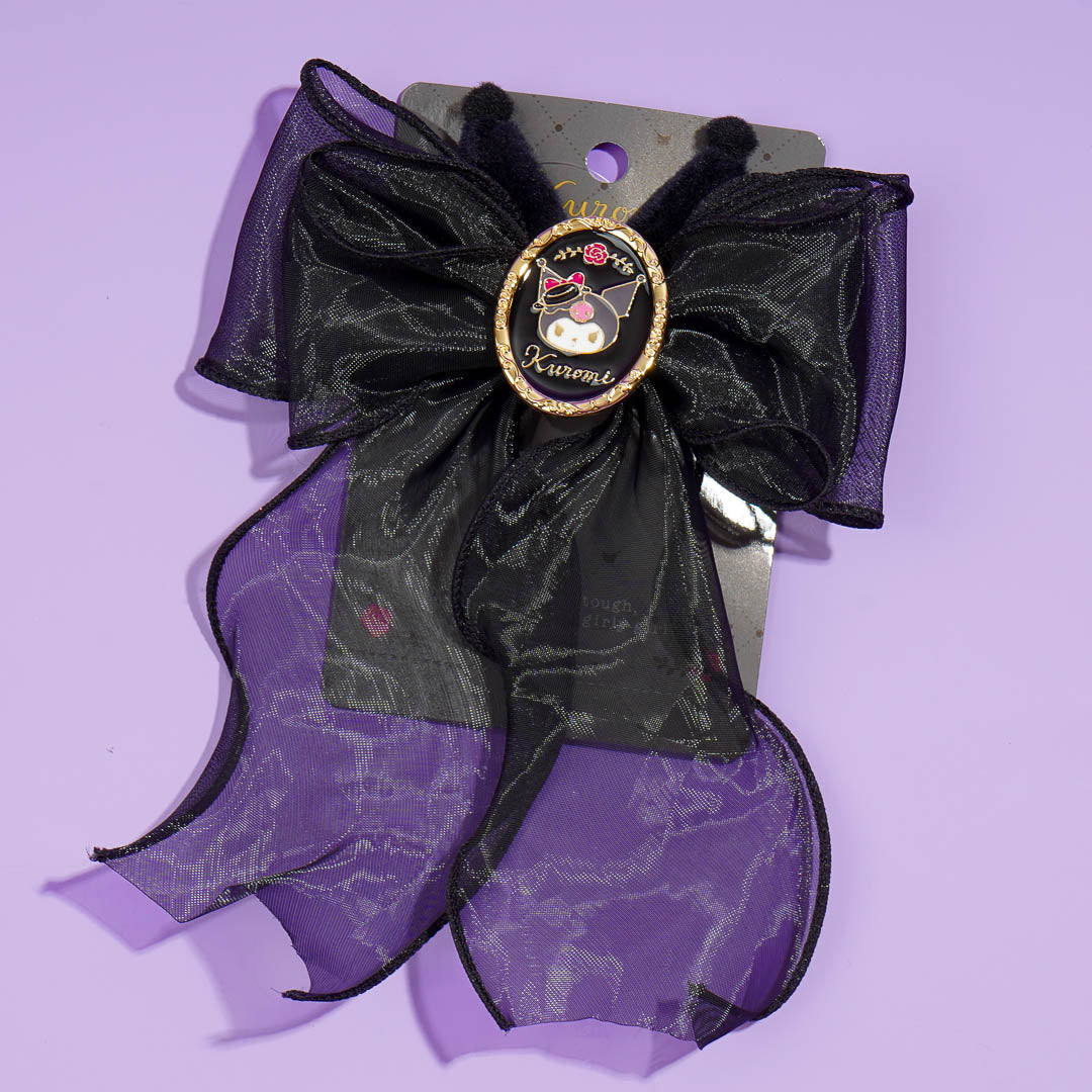 Complete your kawaii look by decorating your hair with this cute clip! It has a sheer ribbon decor with a center emblem showcasing Kuromi. This clip also has 3D Kuromi ears.