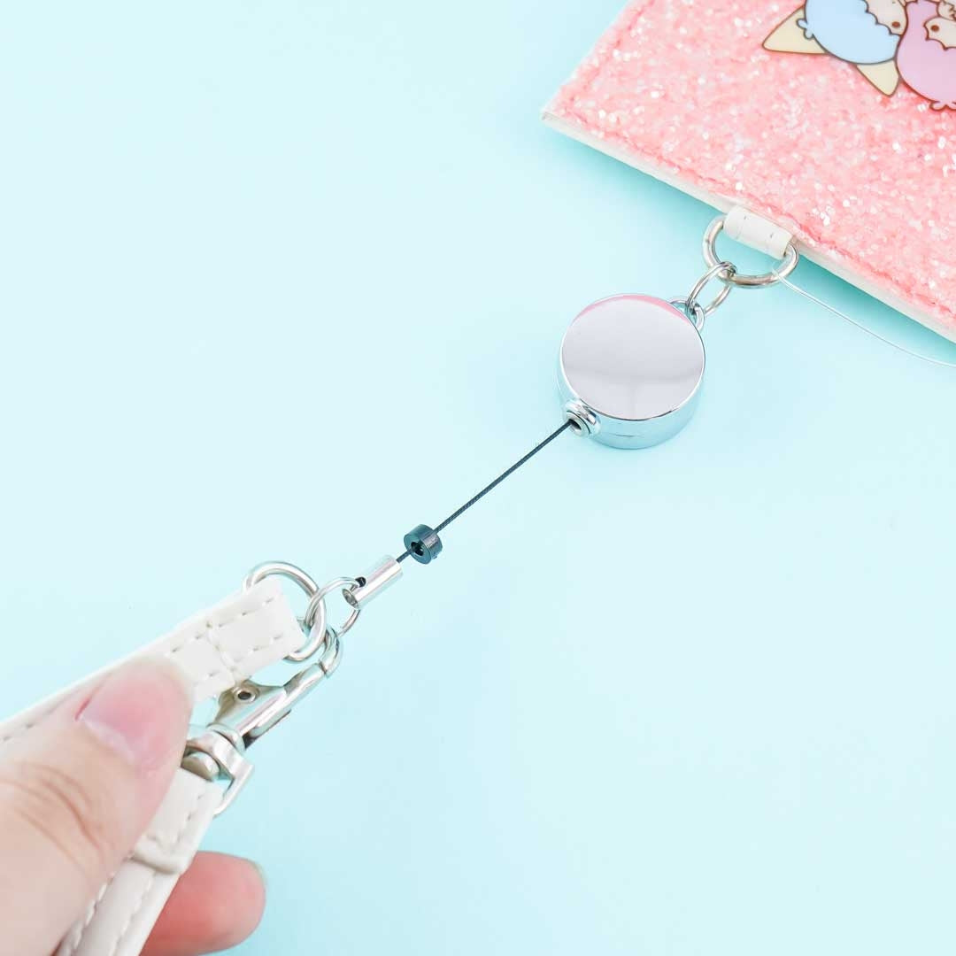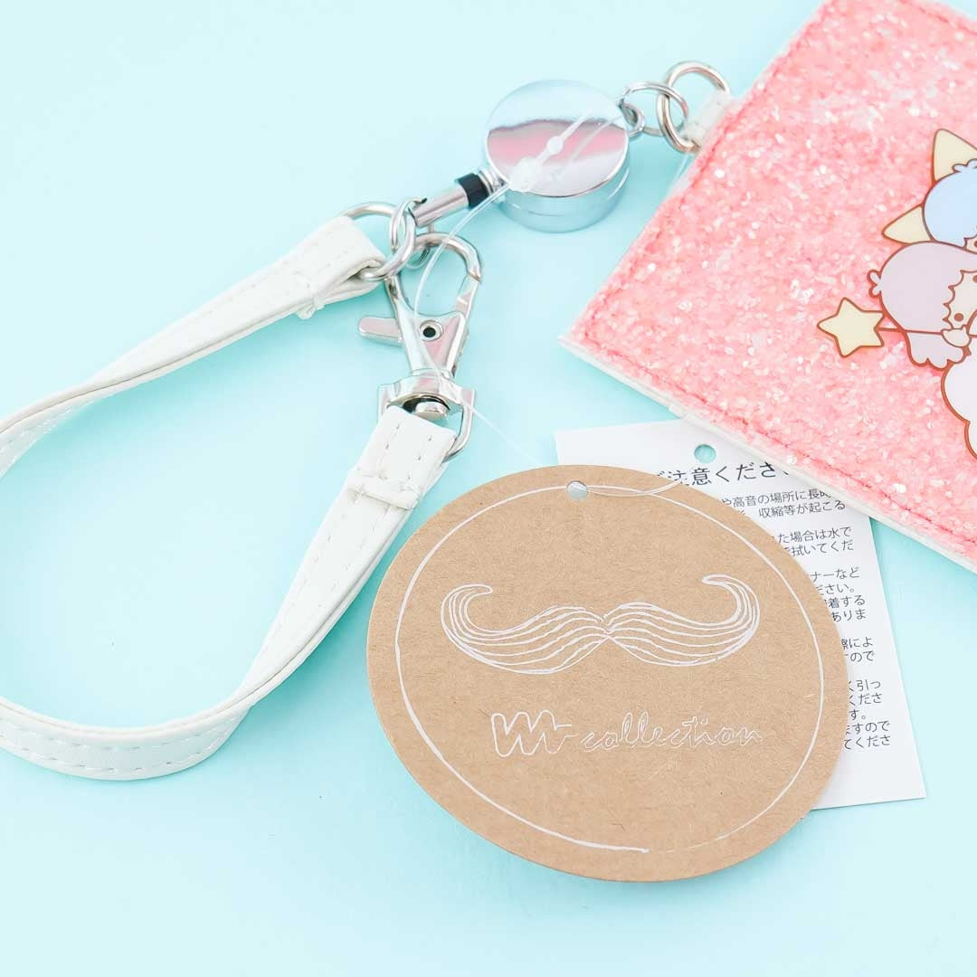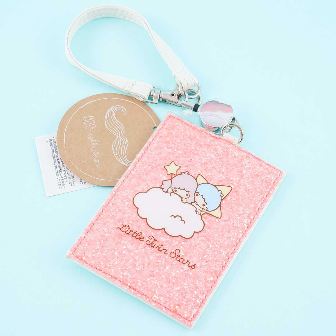 Keep your cards in this super cute glittery case featuring a print of the Little Twin Stars on a cloud! It has a retractable reel and a strap with a metal hook.