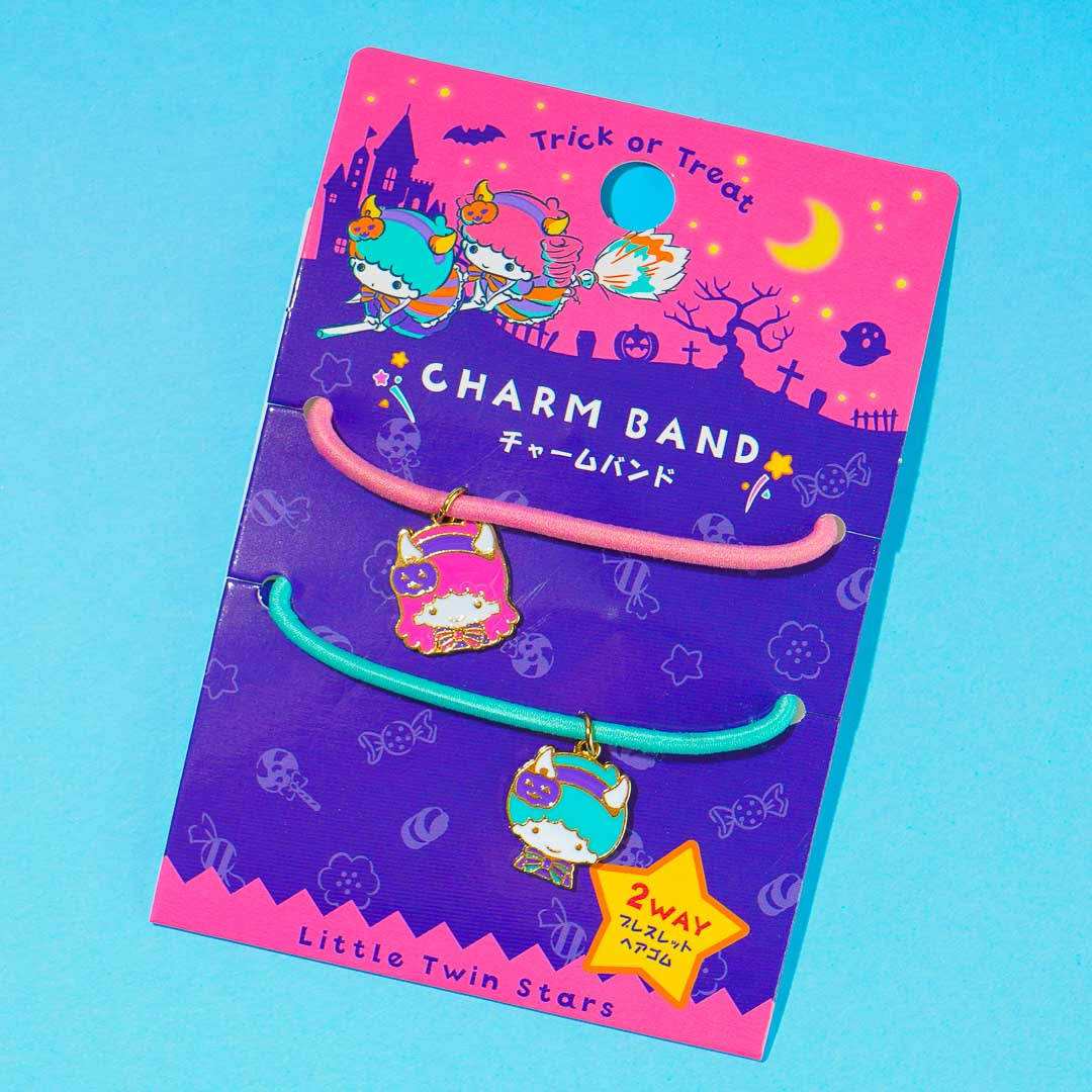 Kawaii-fy your look with these hair ties that come with Halloween-themed charms! The charms feature illustrations of the Little Twin Stars wearing devil horns. You can also use them as bracelets!