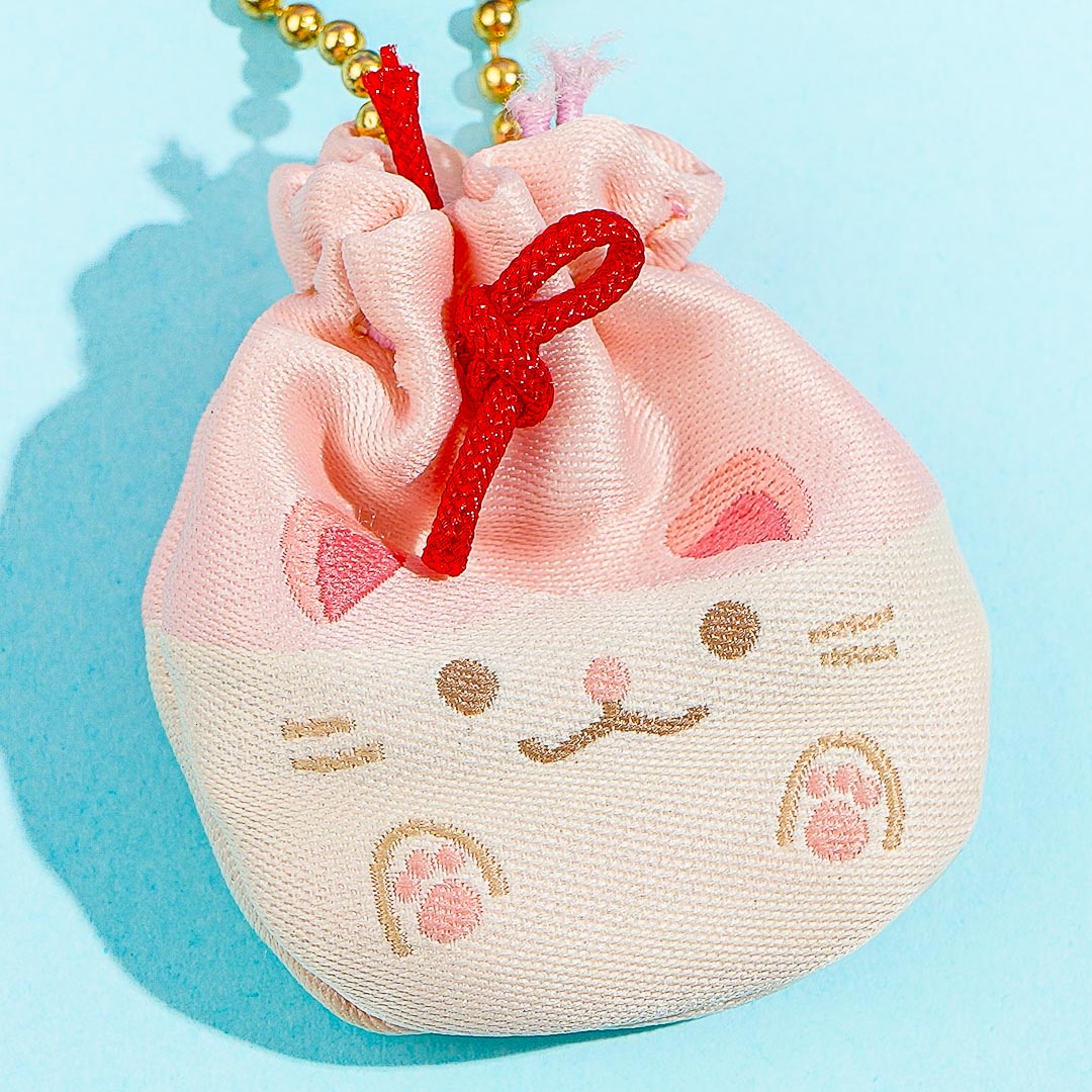 This super cute charm looks like a mini pouch and features a cute cat embroidery! Attach this to your backpack or purse using the ball chain for a touch of kawaii.