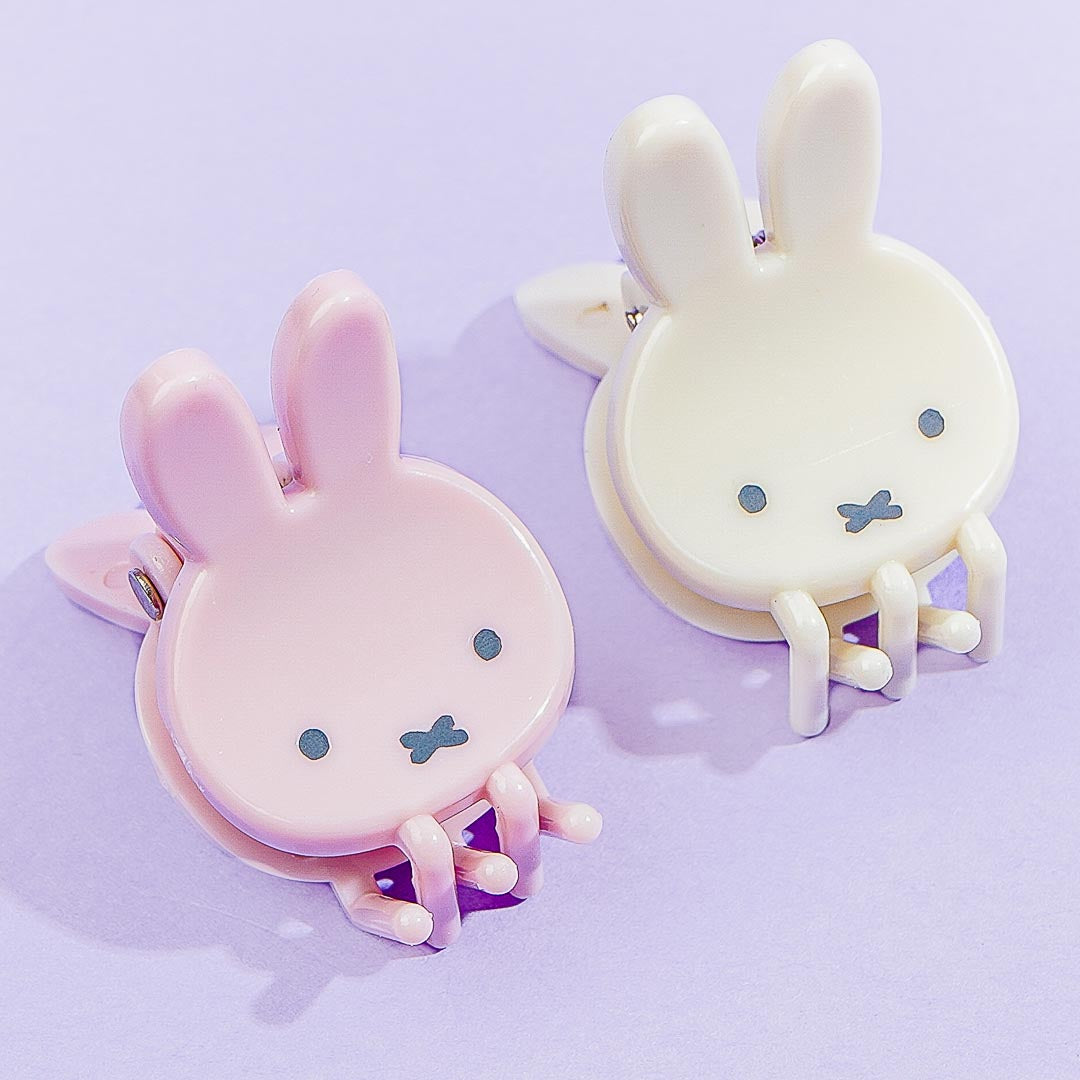 Use this kawaii set to add a dose of cuteness to your hairstyle! The claw clips feature die-cut Miffy face designs that come in pale colors, ivory and light pink.