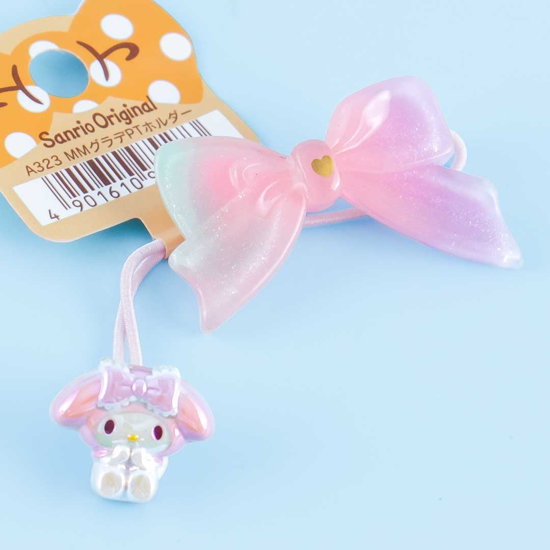Kawaii-fy your ponytail using this hair tie featuring a My Melody-shaped charm on one side and a huge gradient ribbon charm on the other! Both sparkly charms are made of durable material.