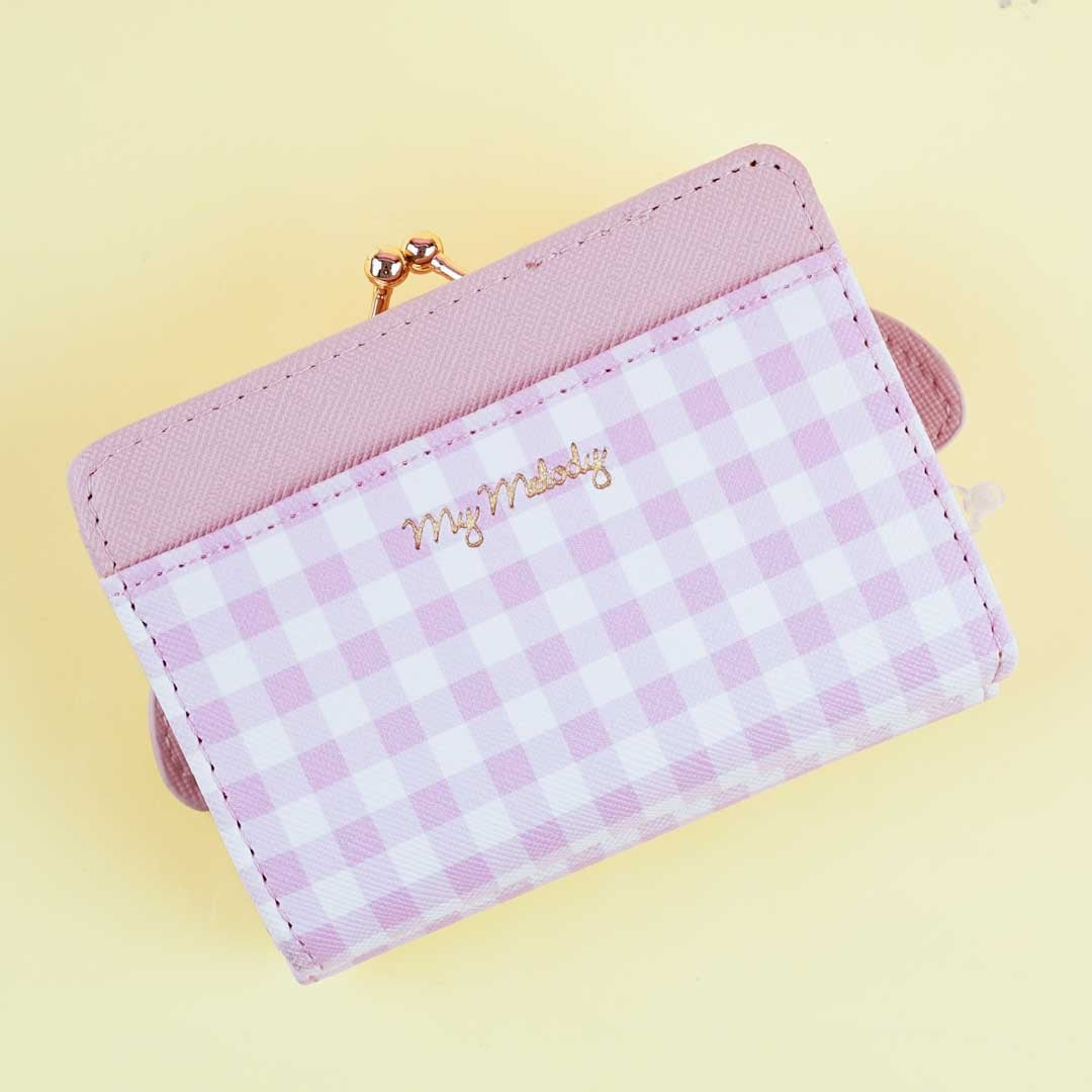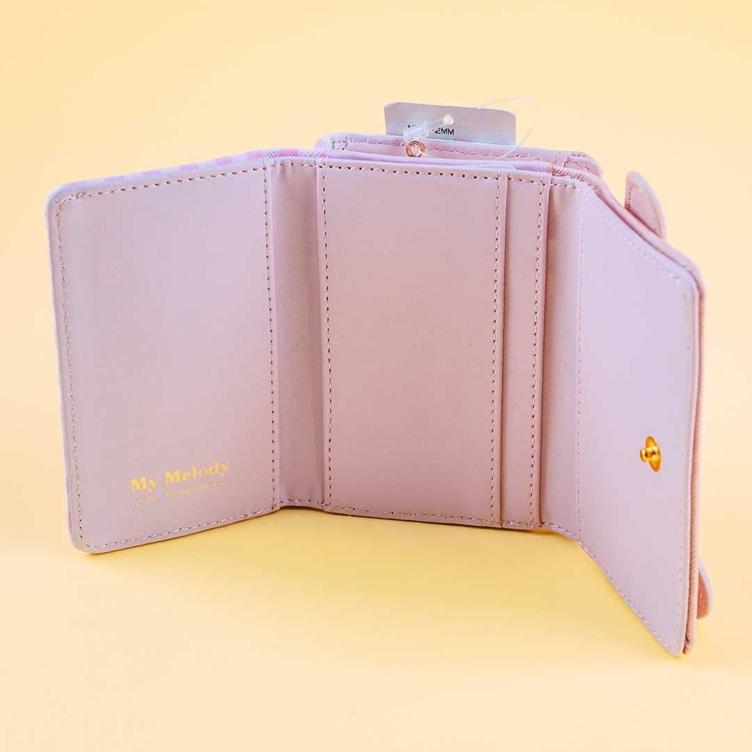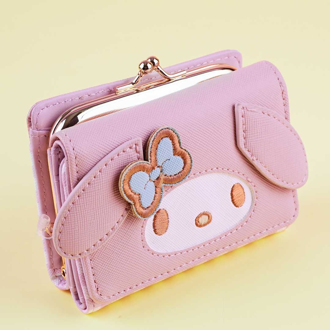 Take this kawaii triple-folding wallet with you while you’re running errands! It has a super cute My Melody face embroidery decor on the front! You can safely keep your cash and cards on the multiple card slots with snap button closure, as well as loose change inside the dedicated coin purse back section that has a wide-mouth metal clasp closure.