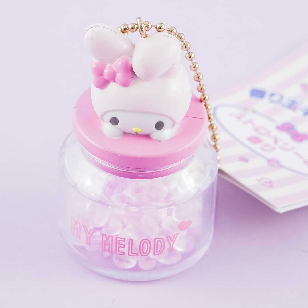 Add this cute bottle charm to your Sanrio collection. Not only does it feature My Melody stuck on its lid, but it also has fragrance beads inside the bottle! You can attach it to your favorite bag with its removable ball chain.