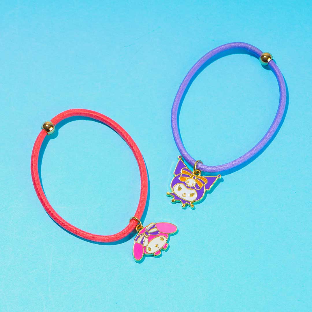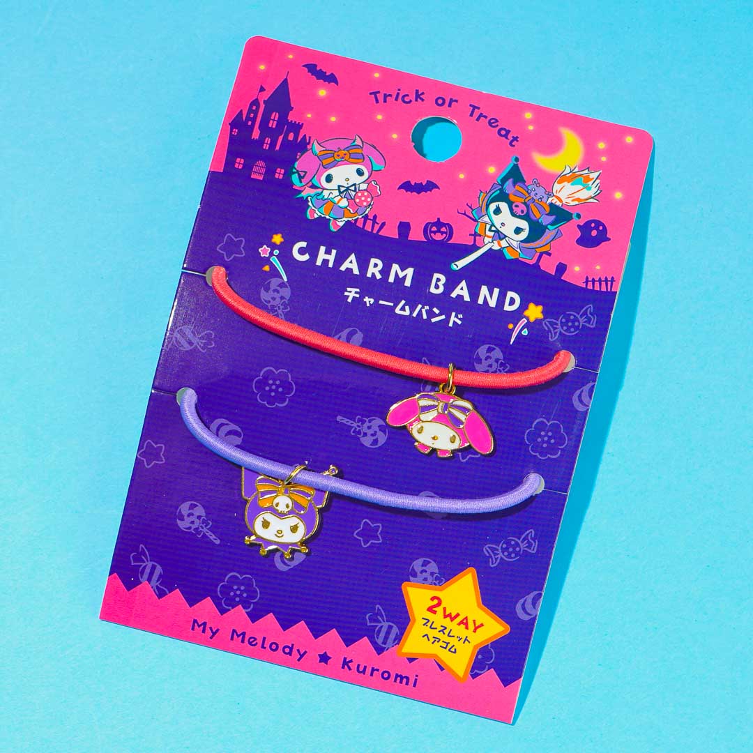Be matchy-matchy with your bestie with these kawaii hair ties! These can be also be used as bracelets! They feature cute charms of My Melody and Kuromi wearing Halloween-themed ribbons!.
