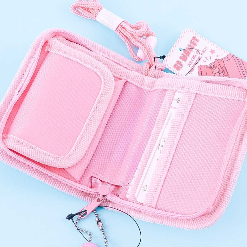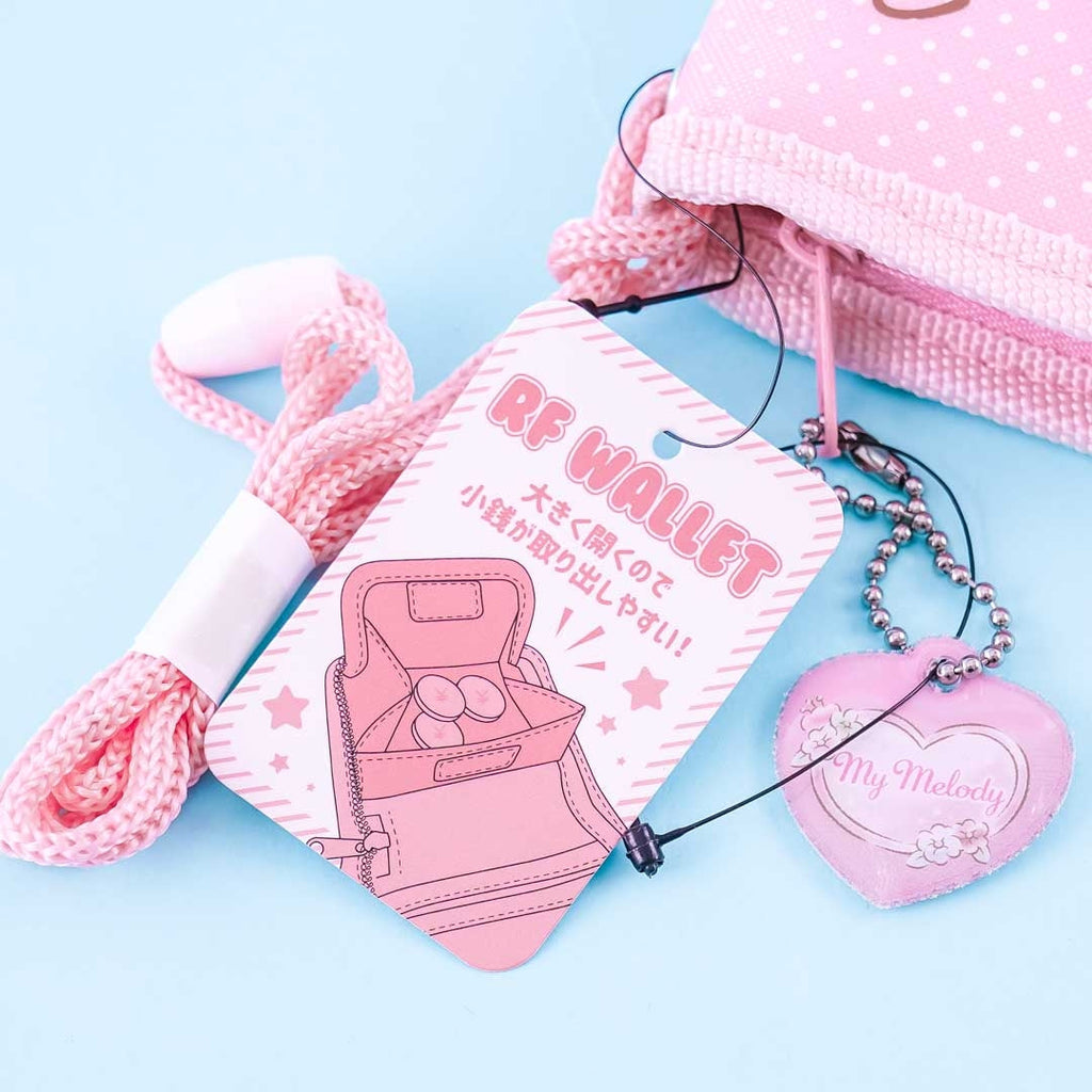 Store your cash and cards inside this super kawaii wallet. It features prints of My Melody wearing a lovely maiden outfit. It features multiple pockets, card slots, a zipper closure, and a shoulder strap. This wallet also comes with a heart-shaped charm with a detachable ball chain.