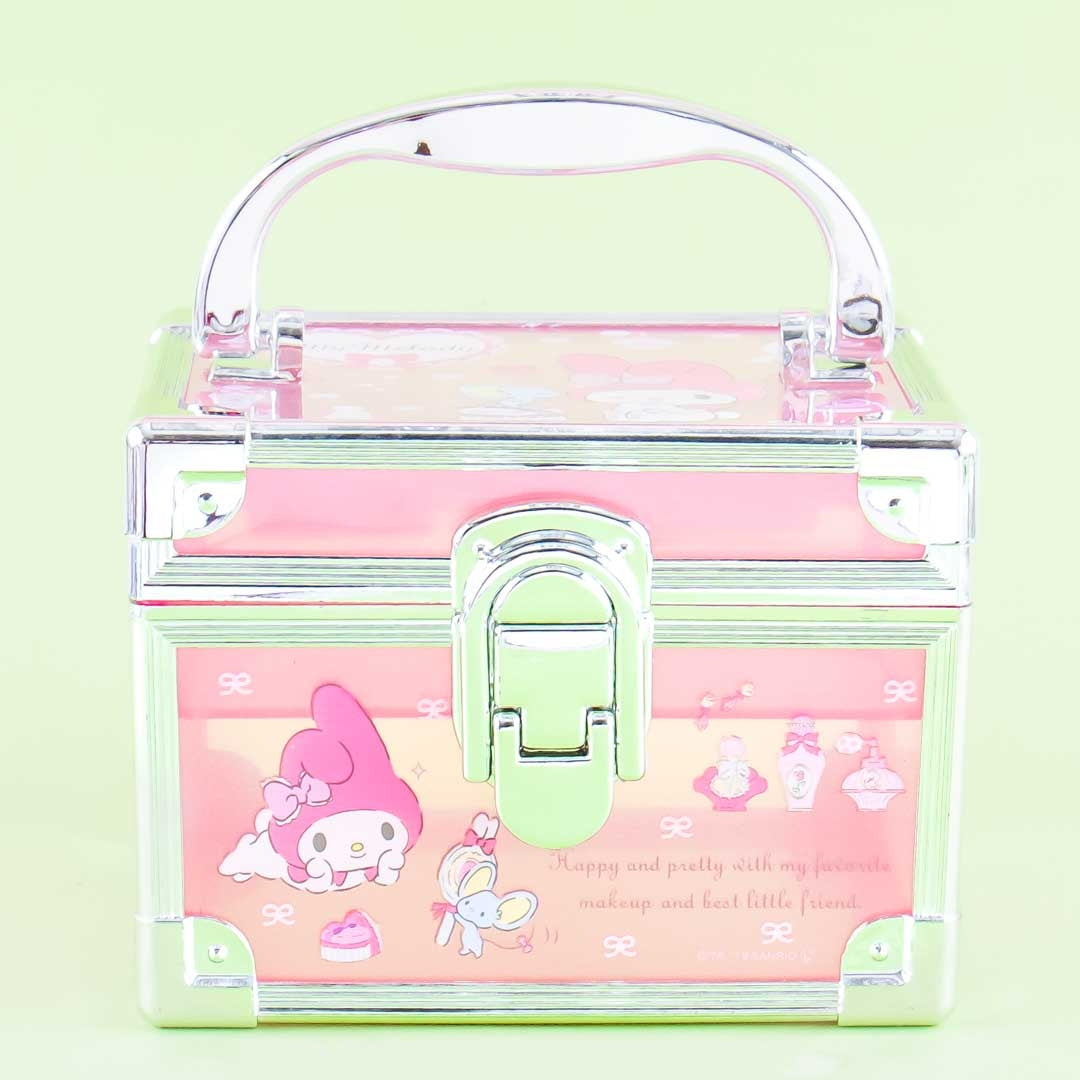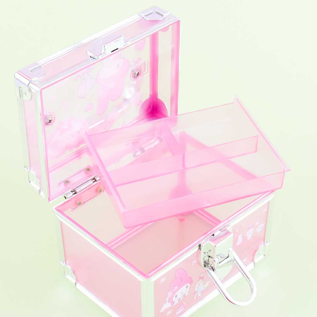 This mini transparent jewelry box features a cute illustration of My Melody! Organize your accessories with its removable partitioned tray. It also has a lock and a handle both made of metal.