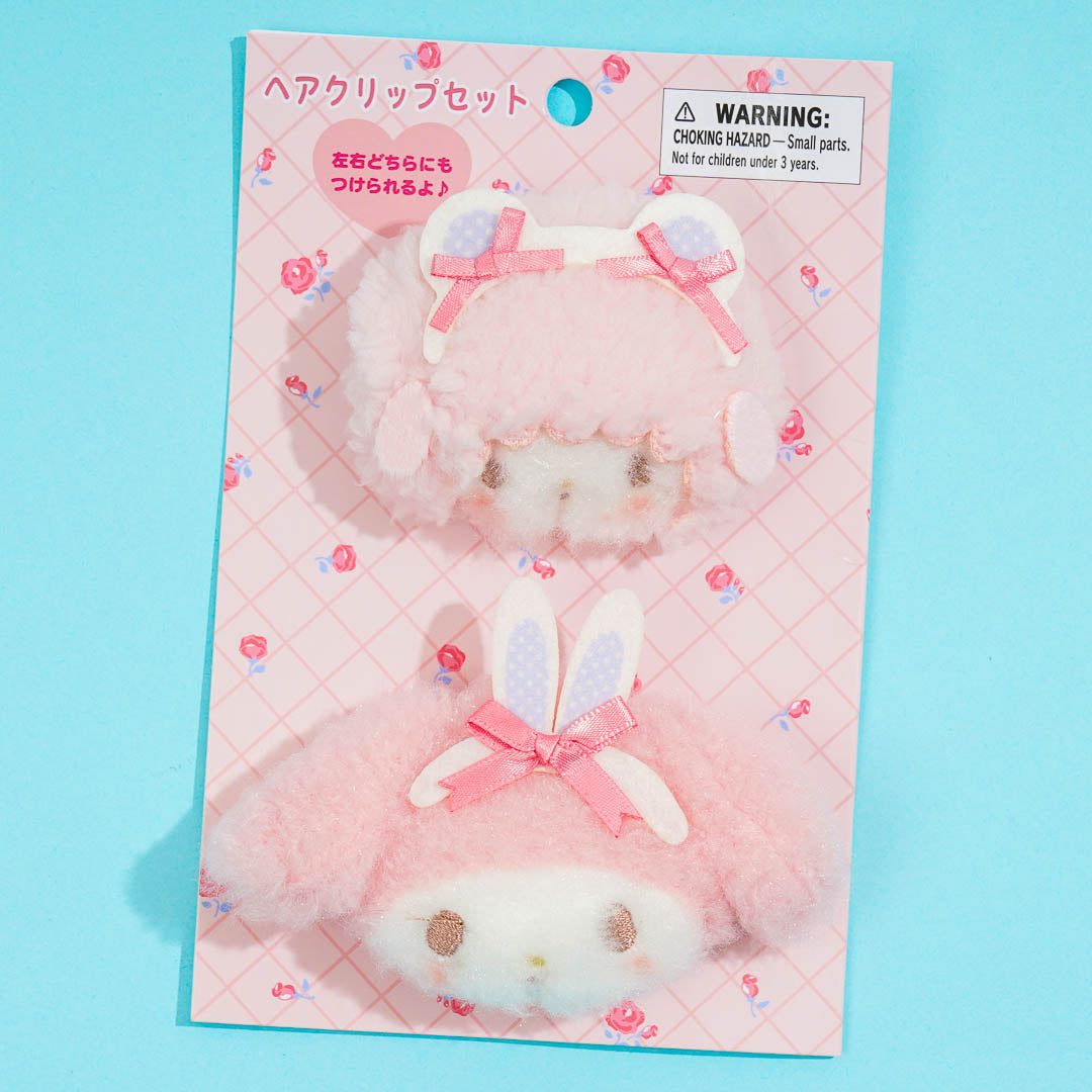 Give yourself the cutest hairdo to match your outfit with this cute set of clips! It includes a My Melody plushie clip and a My Sweet Piano plushie clip. They're the perfect accessories to give you that kawaii look!