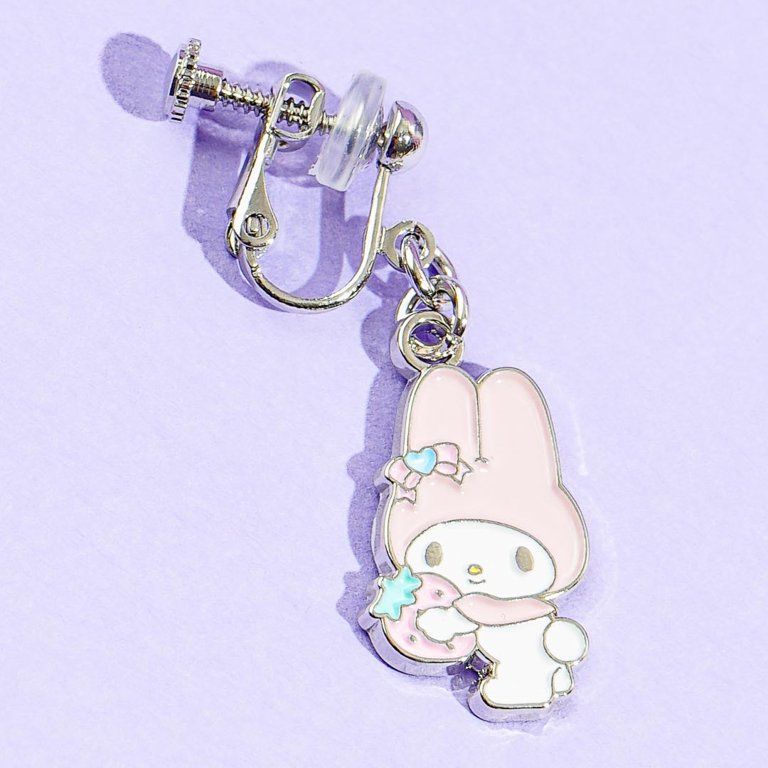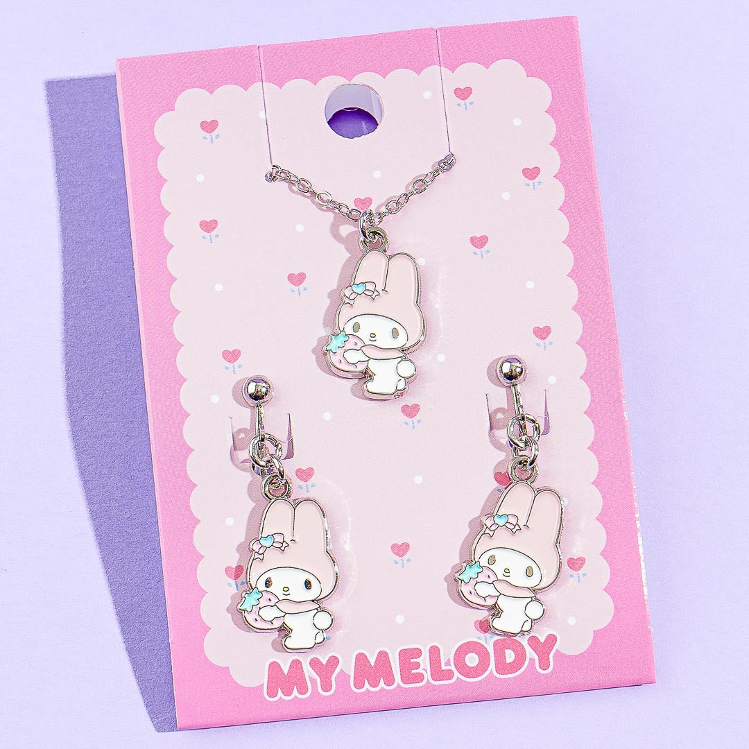 Look extra cuter when you wear this set of jewelry! It includes a chain necklace and a pair of clip-on dangling earrings that both feature die-cut My Melody charms.