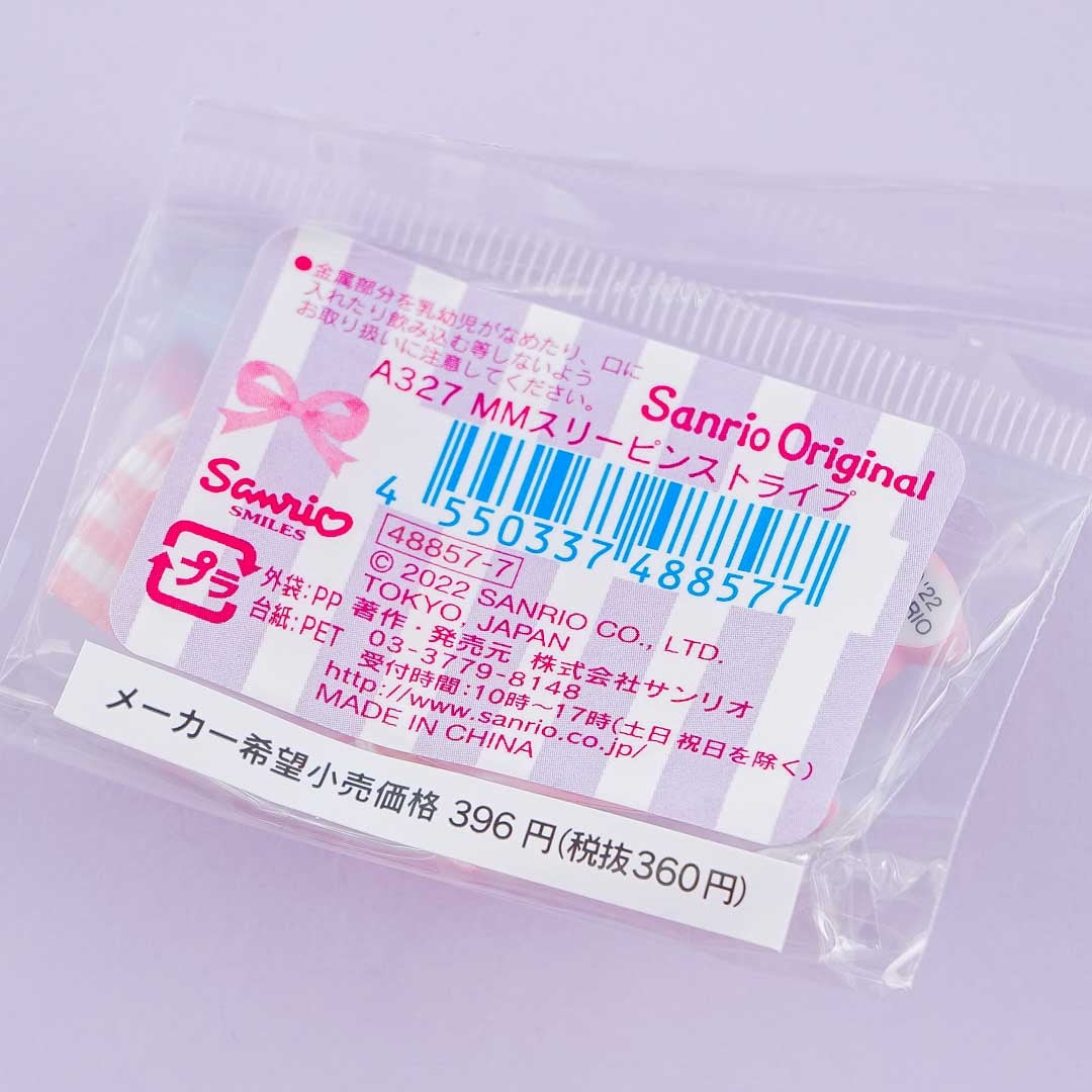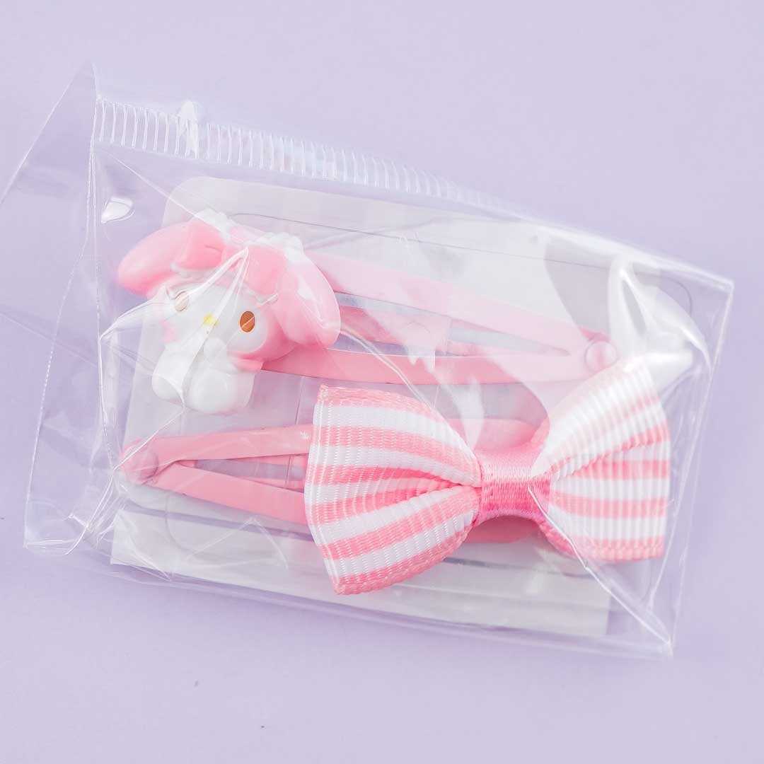 • A pair of kawaii hair clips featuring a My Melody decor and a ribbon