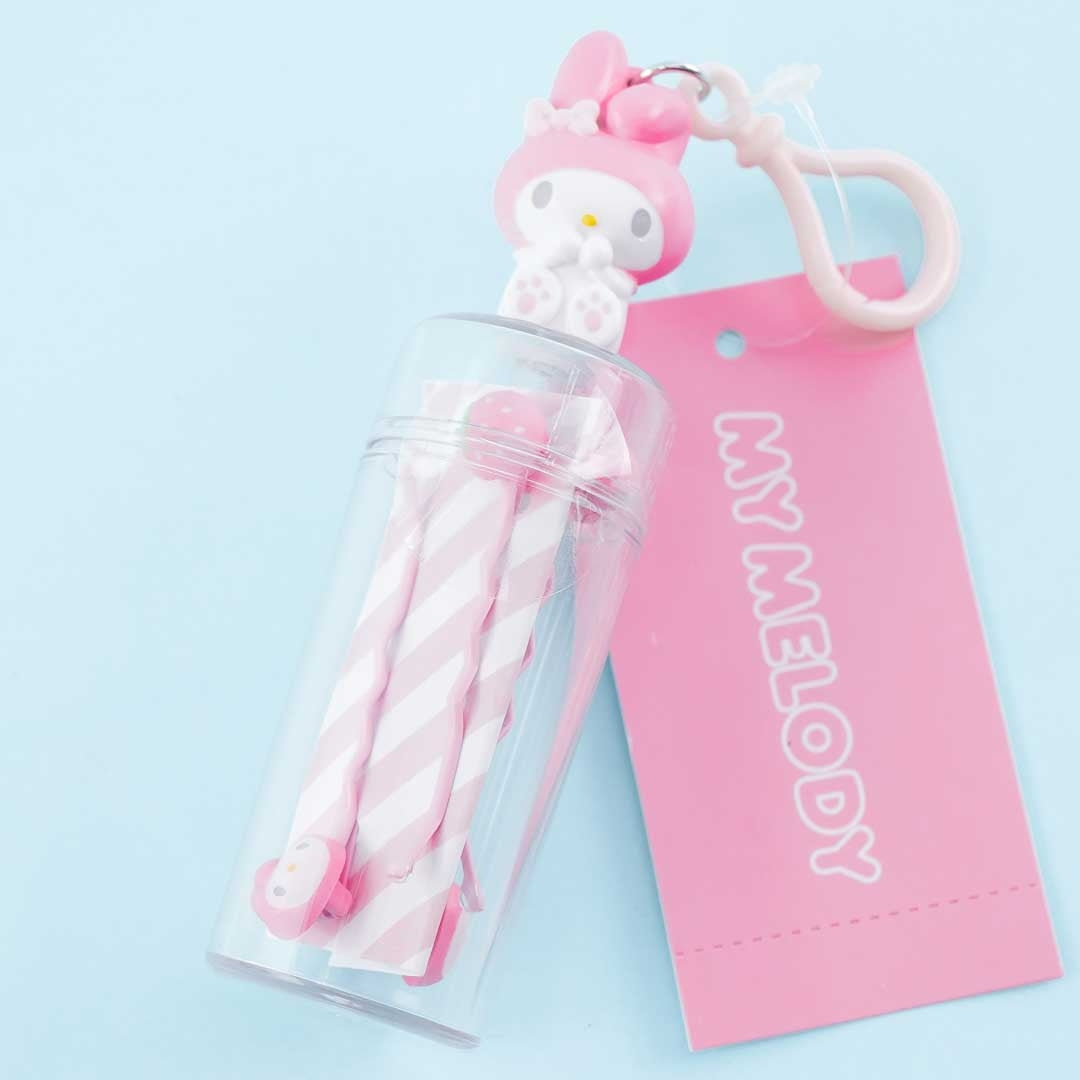 Comes with a transparent case with a My Melody decor and a metal clip