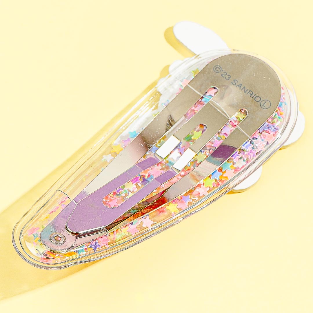 This super kawaii transparent clip is filled with shiny rainbow-colored stars and is decorated with a die-cut Pochacco head charm! Add a dose of cuteness to your look by wearing this hair accessory.