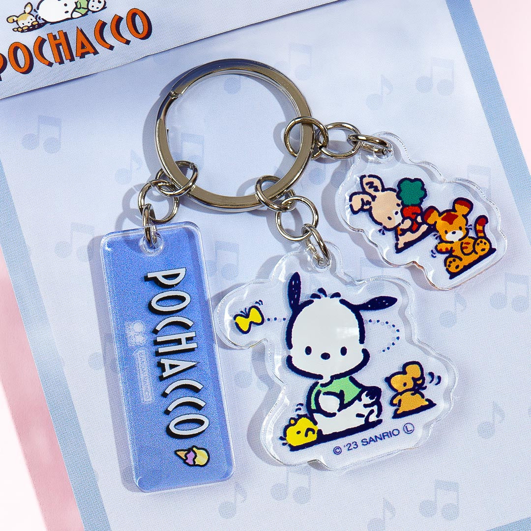 Show your love for Sanrio when you attach your keys to this super kawaii acrylic keychain! It has three charms featuring retro-style drawings of Pochacco and his friends.