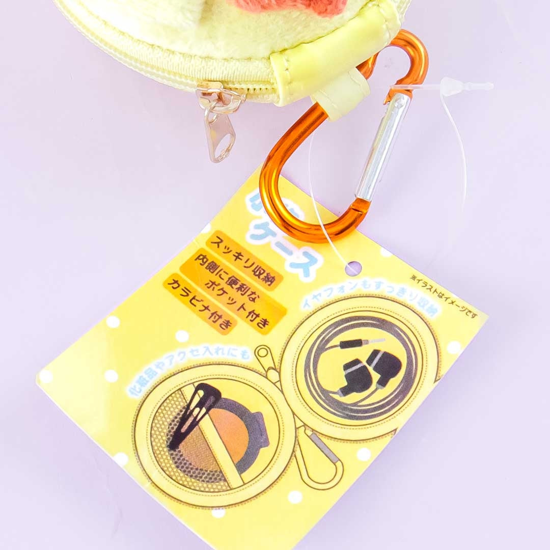 Organize your earphones inside this round zippered Pompompurin case. It has an inner net pocket for organizing cords and a metal carabiner so you can hang it on your favorite bag!