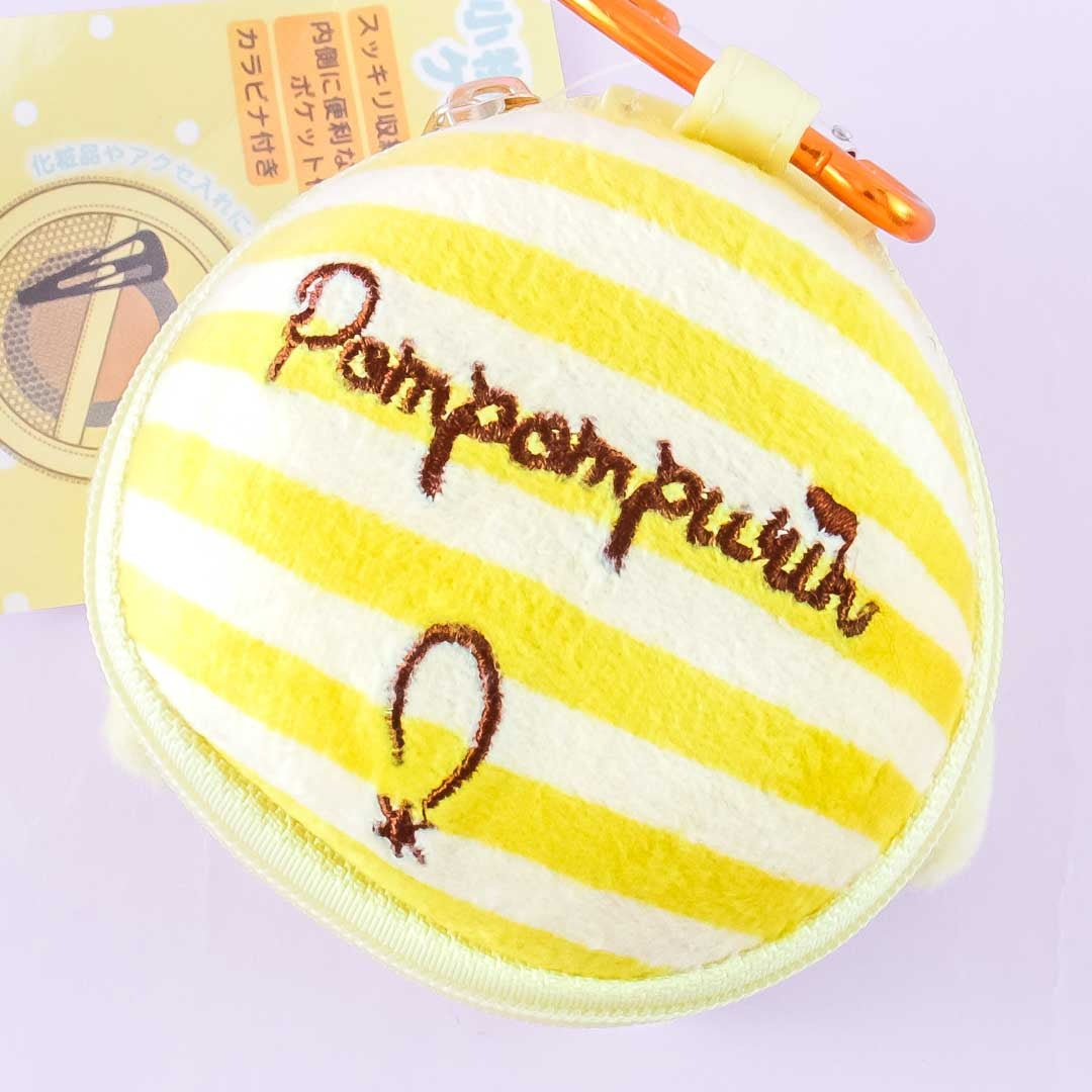 A round fluffy Pomppmpurin earphone case with a ribbon
