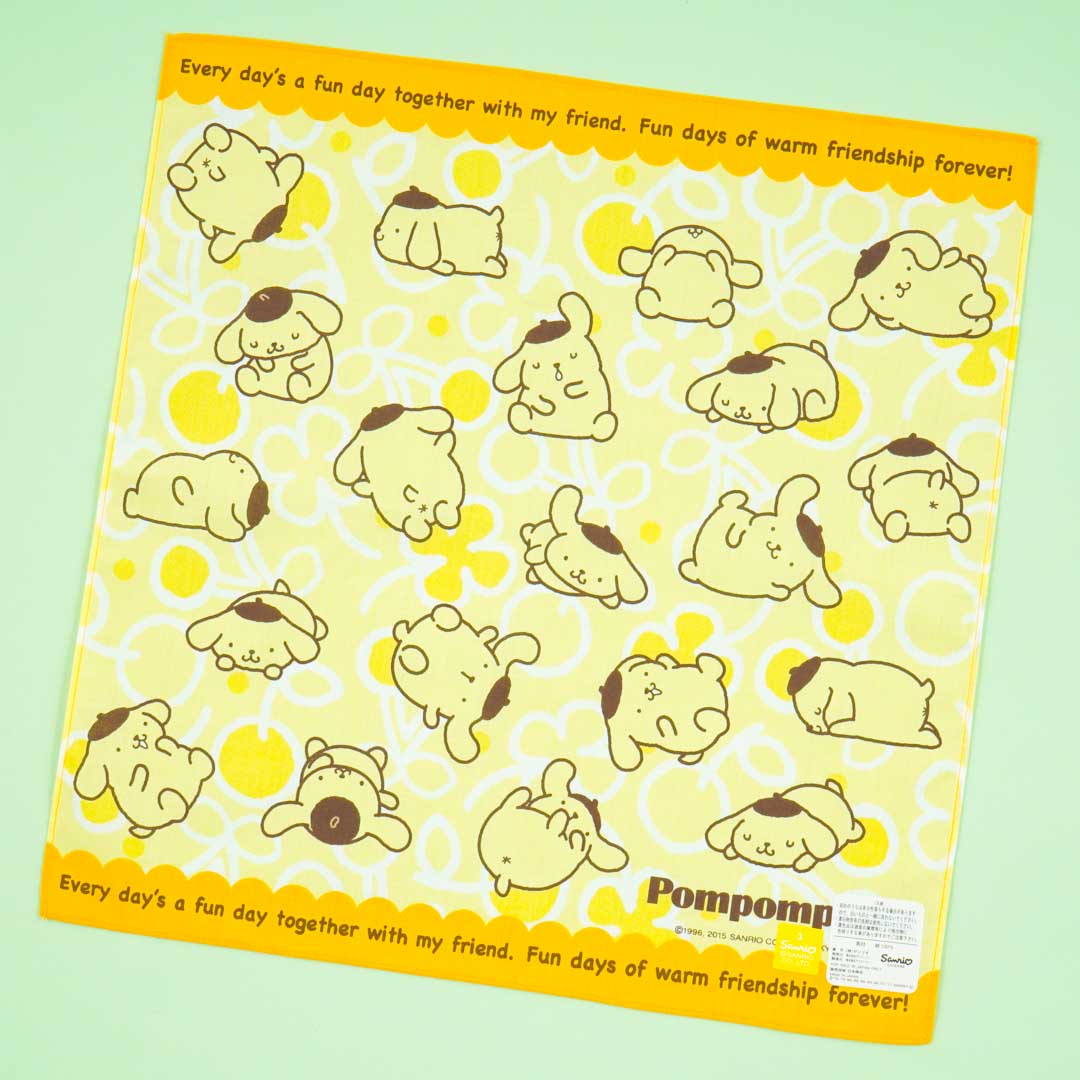 This cute hanky is decorated with prints of Pompompurin in various fun sitting and lying positions! Keep your hands dry as you use this for wiping.