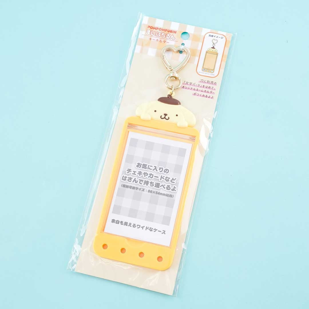 This kawaii card holder showcases a peeking Pompompurin decor and a heart-shaped metal clip. Use it to bring your bus pass or your card! You can customize this cardholder by inserting at the bottom portion Japanese hiragana characters that are sold separately.
