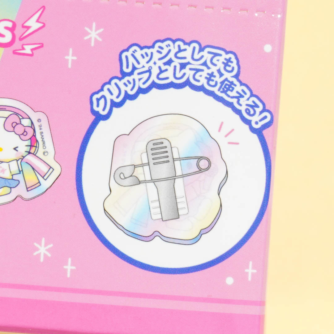 Decorate your plain backpack or jacket with this die-cut badge! It features illustrations of Sanrio Characters performing in a music festival. Surprise yourself as you’ll get a random character out of six possible designs!
