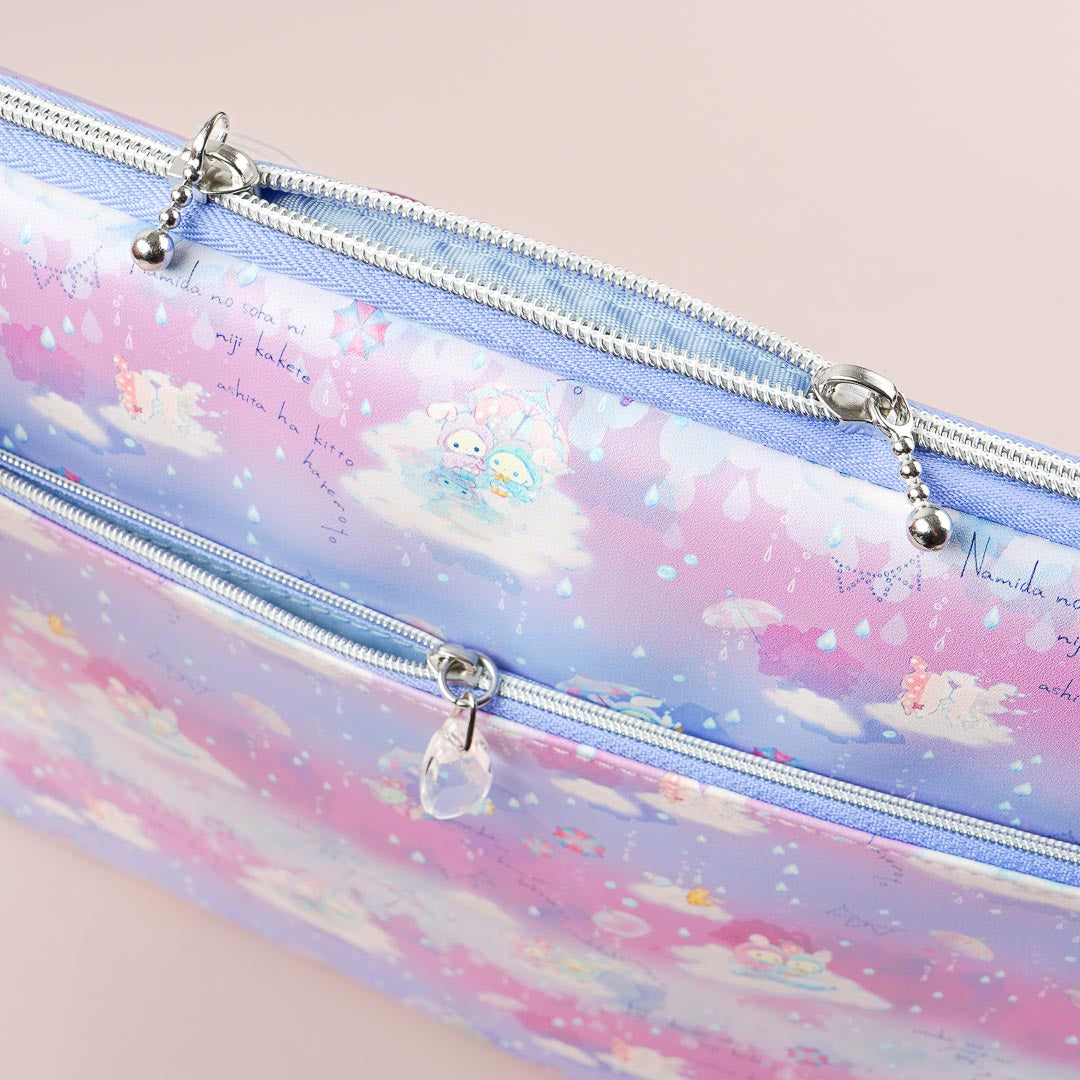 Take your laptop or tablet safely to school or work by using this super cute case! It has a kawaii illustration of the twin rabbit ringmasters Spica and Shappo surrounded by tear-shaped raindrops! This convenient case has a zippered front pocket where you can place your chargers, mouse, and other accessories.