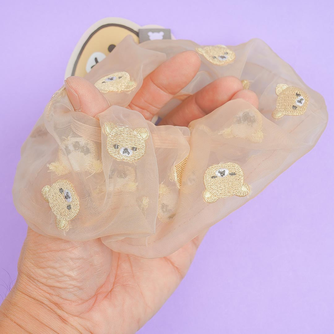 Use this super cute scrunchie to tie your hair! It's made from sheer material and comes with kawaii embroideries of Rilakkuma's face with different expressions.