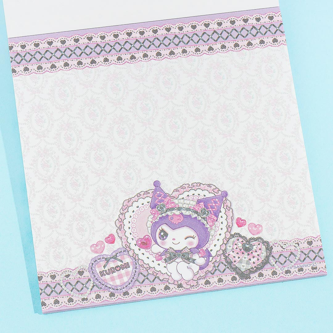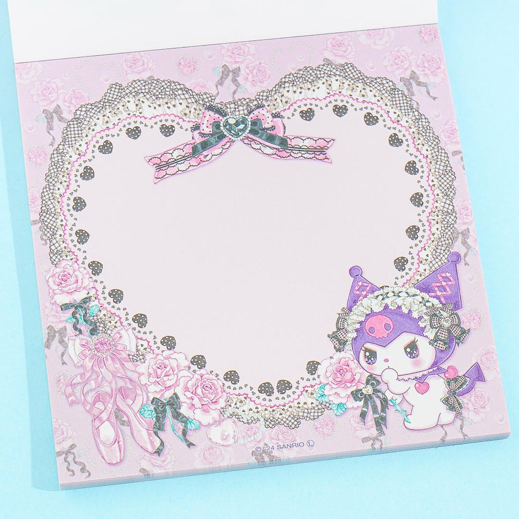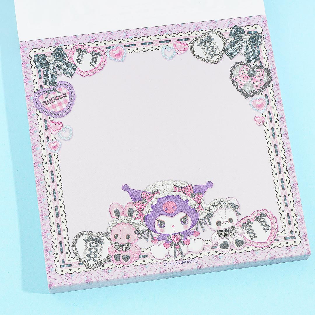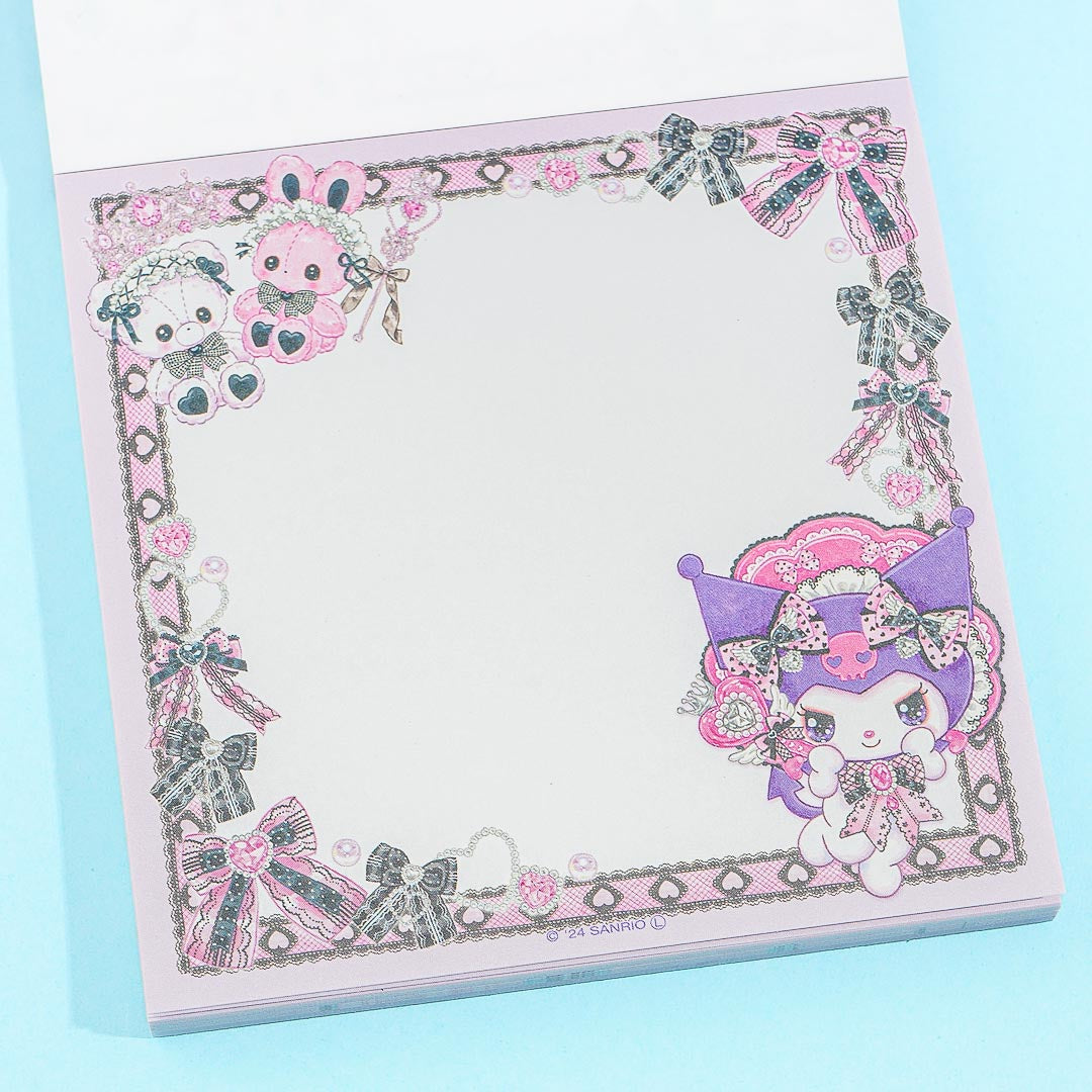 This square-shaped memo features a kawaii illustration of Kuromi with sparkly eyes and wearing a Lolita dress! The special design is a collab between Sanrio and Japanese artist, Fumika Amenomori. Scribble important reminders on this handy notepad!