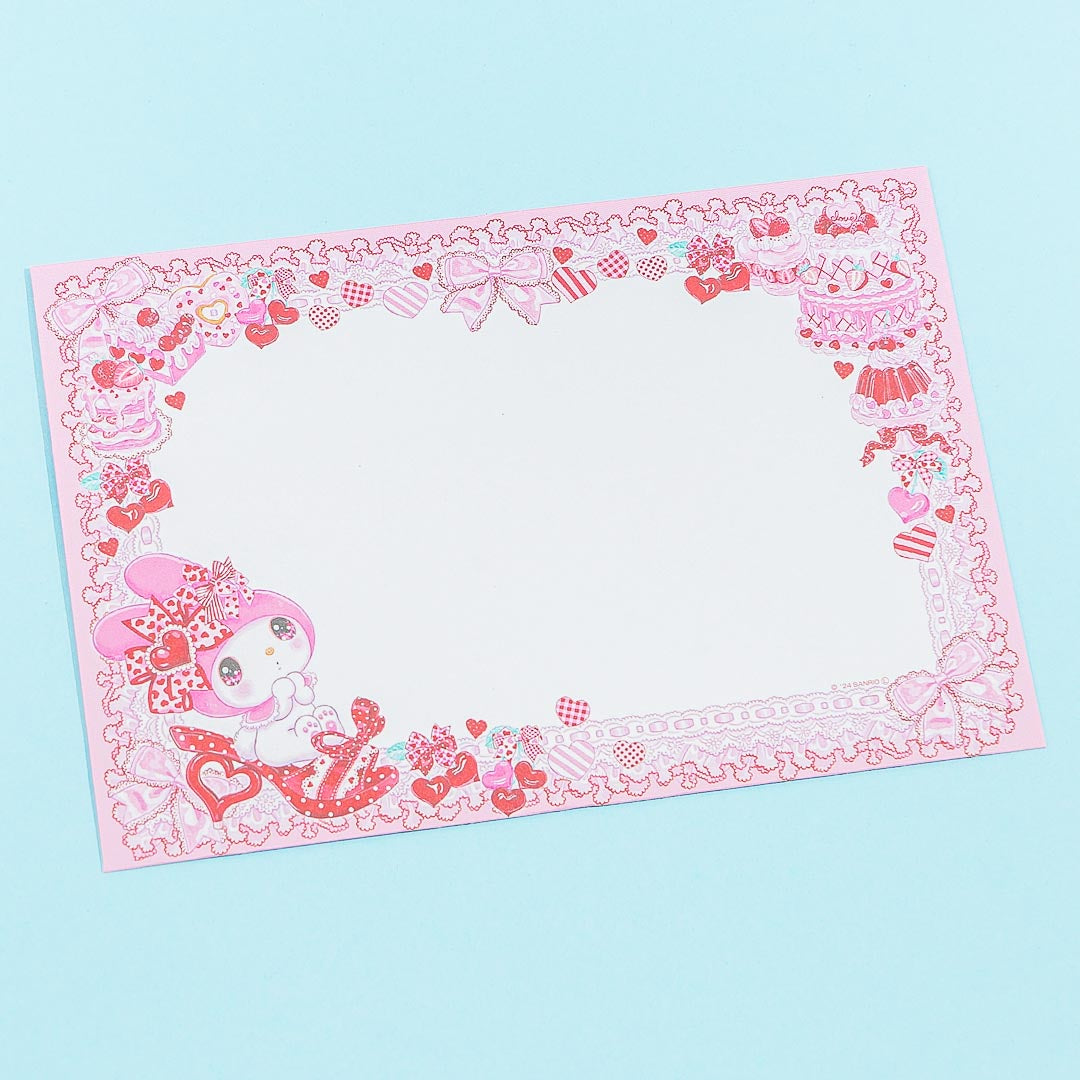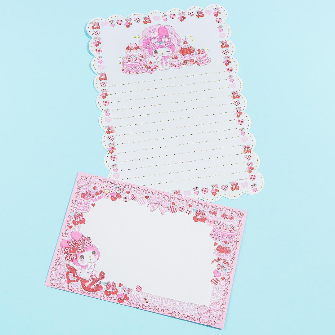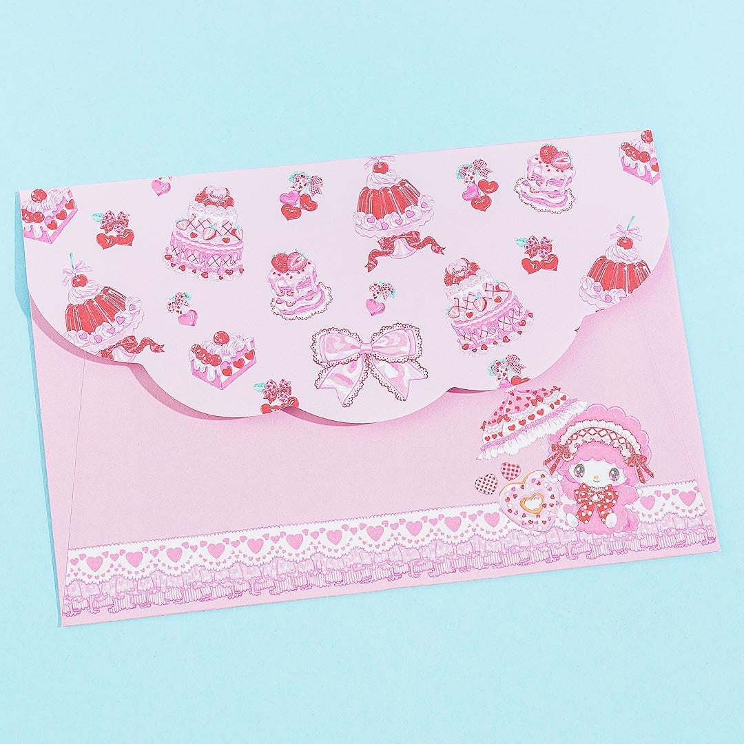 Enjoy sending letters to your family using this kawaii letter set! It includes envelopes and sheets decorated with kawaii prints of My Melody in a Lolita-inspired outfit while surrounded by desserts and heart-shaped cherries. The cute design was specially created in collaboration with Japanese artist, Fumika Amenomori and Sanrio
