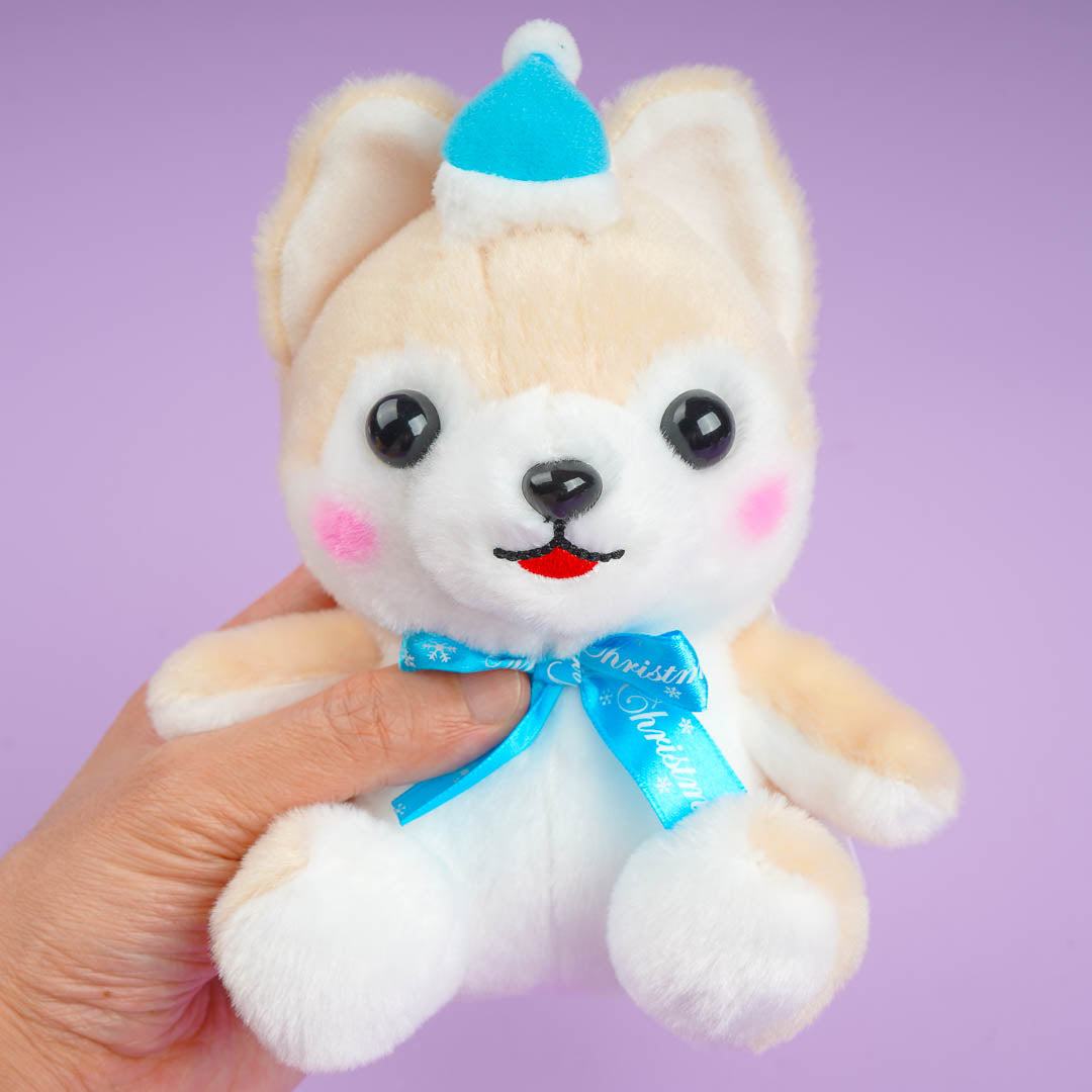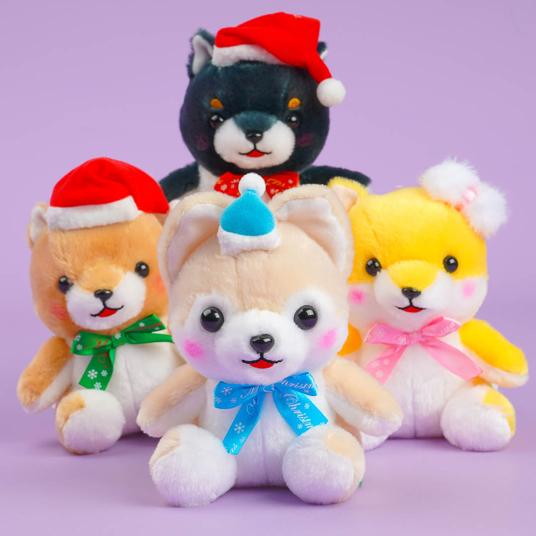 Kawaii-fy your room with a super cute Mameshiba San Kyodai plushie! This medium-sized shiba dog stuffed toy is wearing a fluffy Santa hat and a satin Christmas ribbon. Choose your favorite character or get all the plushies from this holiday collection!