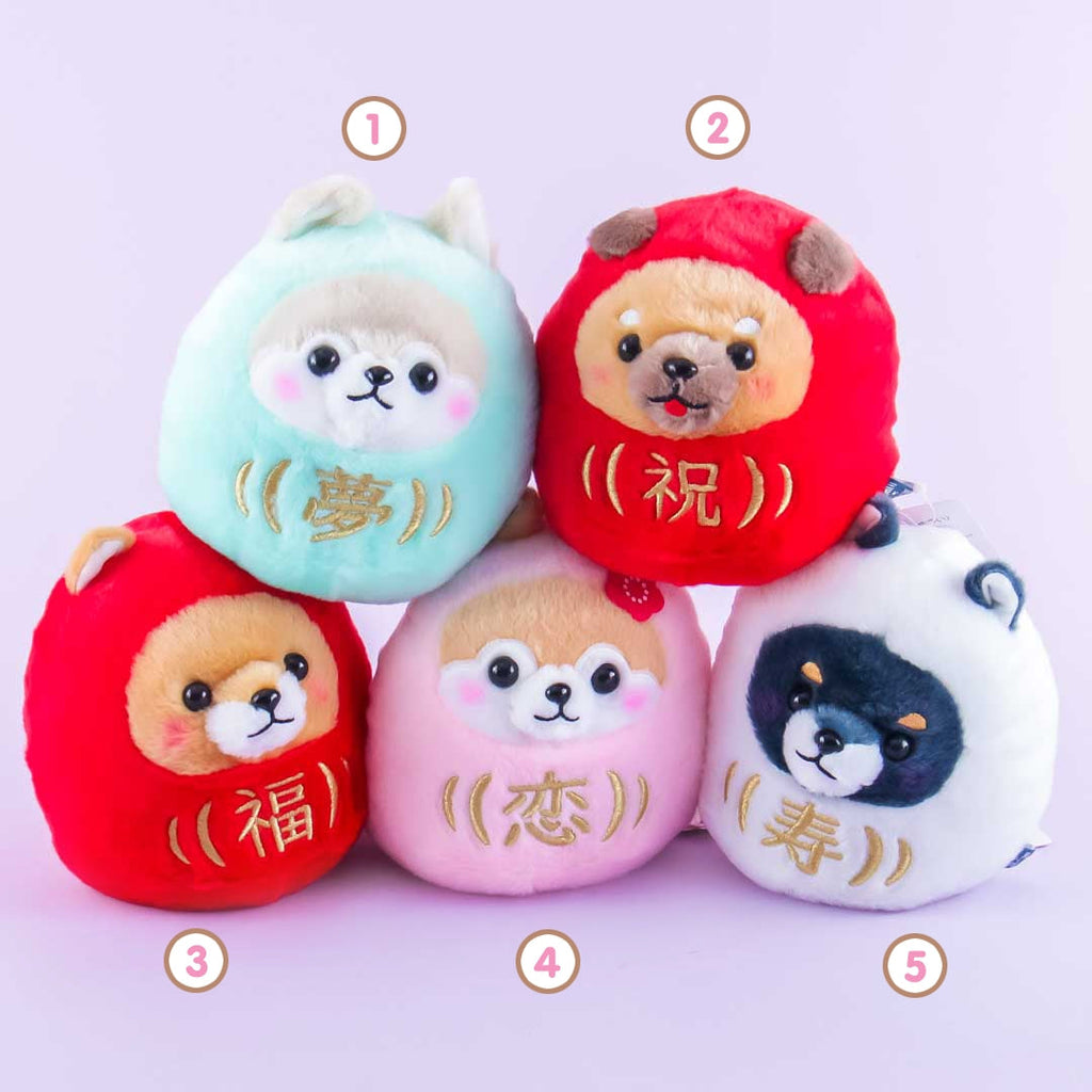 Hug this fluffy Mameshiba San Kyodai character plushie and you might get lucky! This medium-sized cutie has bean stuffing and is shaped like a Daruma or a Japanese traditional round doll that brings good luck.