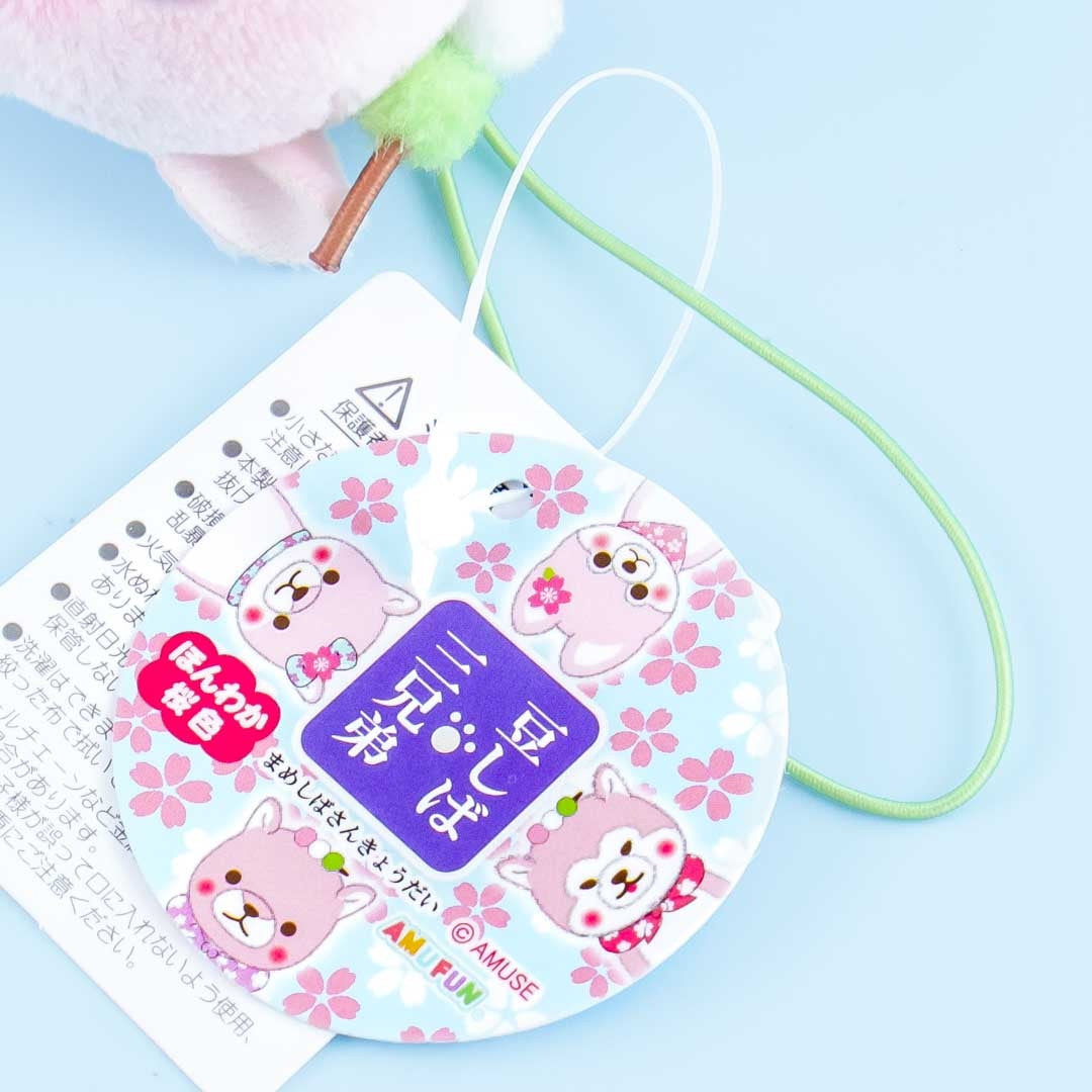 Japan has a month-long sakura or cherry blossom festival celebrating the blooming of the cherry trees. Celebrate the cherry blossom season together with this kawaii pink Mameshiba San Kyodai plushie charm! This mini-sized cutie is wearing sakura festival-themed ornaments. It has an elastic band so you can hang it on your favorite bag!