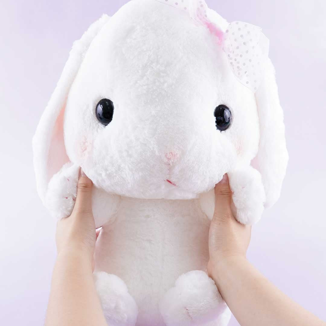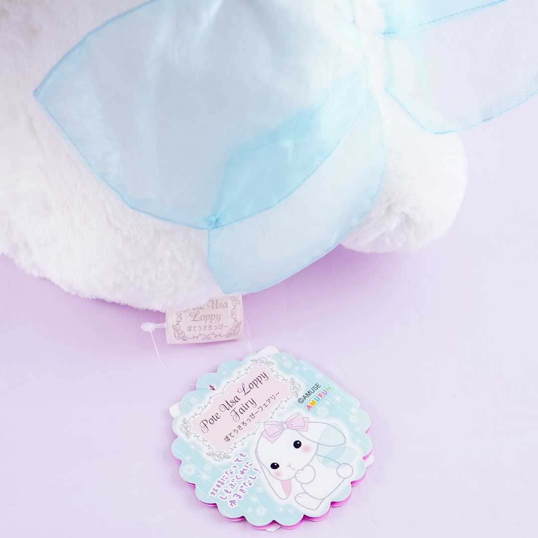 Sleep soundly beside this big fluffy Shiloppy plushie wearing a polka-dot bow! This large-sized cutie comes from the newest Fairy series where the Pote Usa Loppy bunnies turn into kawaii pastel-colored fairy bunnies!