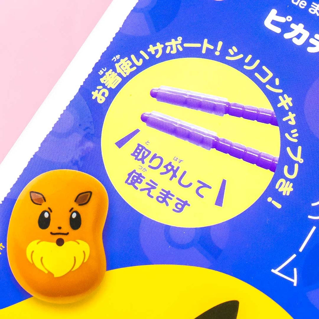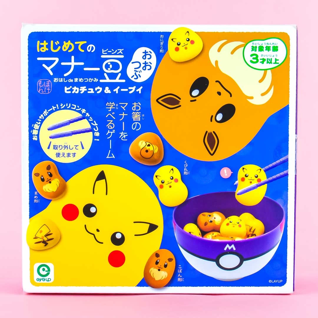Learn how to properly use chopsticks using this toy kit featuring Pikachu and Eevee from Pokémon! It has chopsticks with a plastic guard and large plastic beans in various sizes that you can use for three games: sorting beans, picking beans, and rolling beans. This kawaii set also includes a bowl and an instruction manual for easier play!