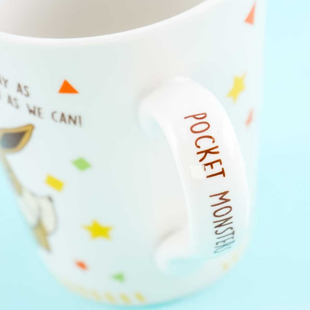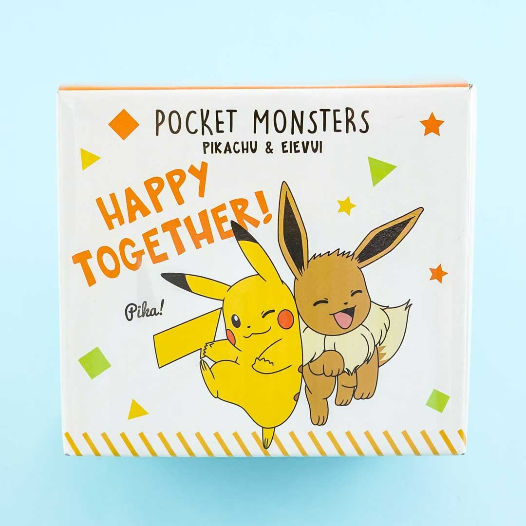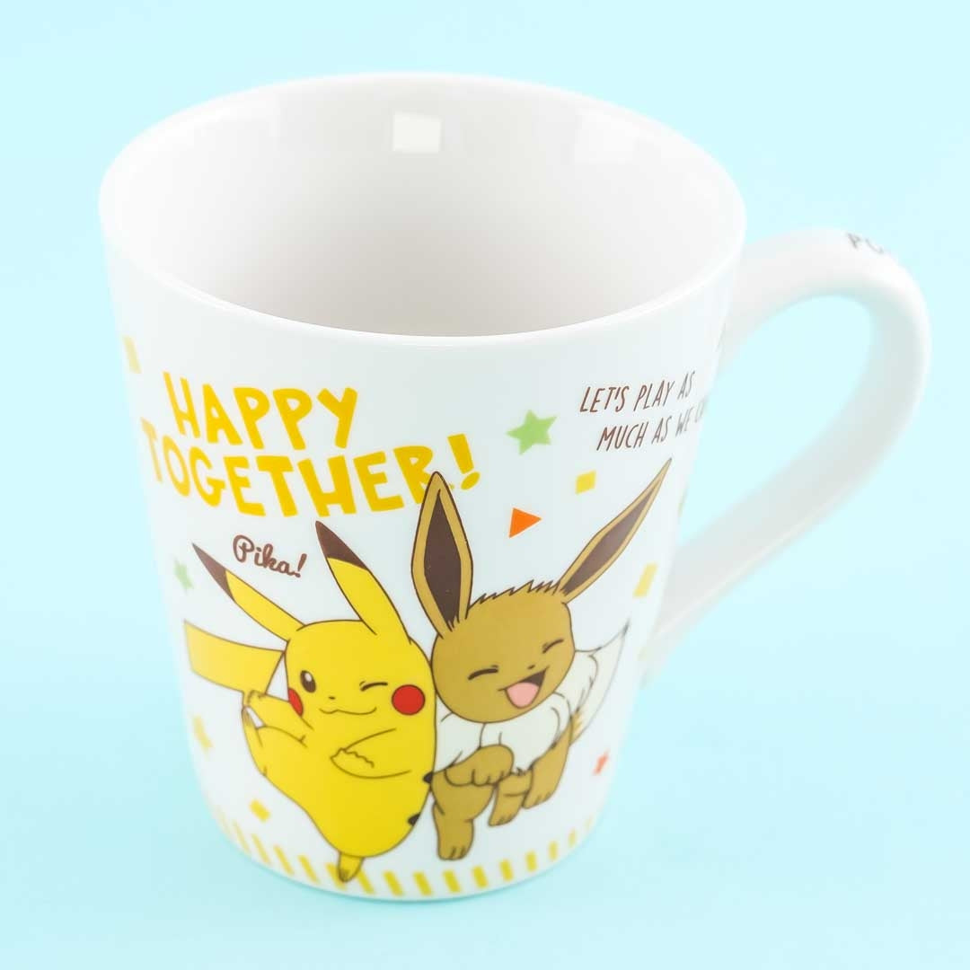 Fill this ceramic cup with your favorite latte! This super cute mug features a print of Pikachu happily playing with Eevee. It is safe to use in microwaves and dishwashers.