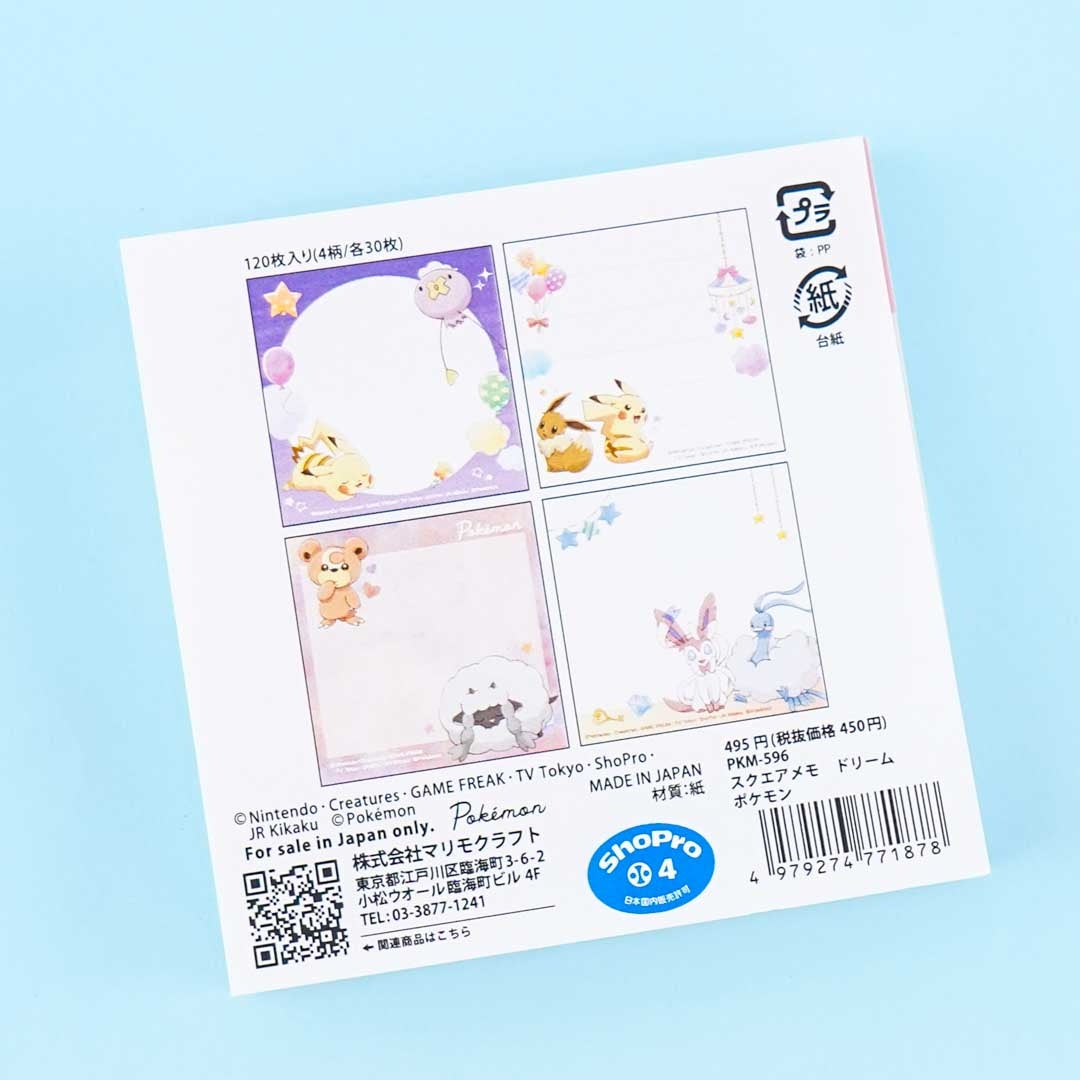 • A kawaii square-shaped memo pad featuring Pokémons and balloons