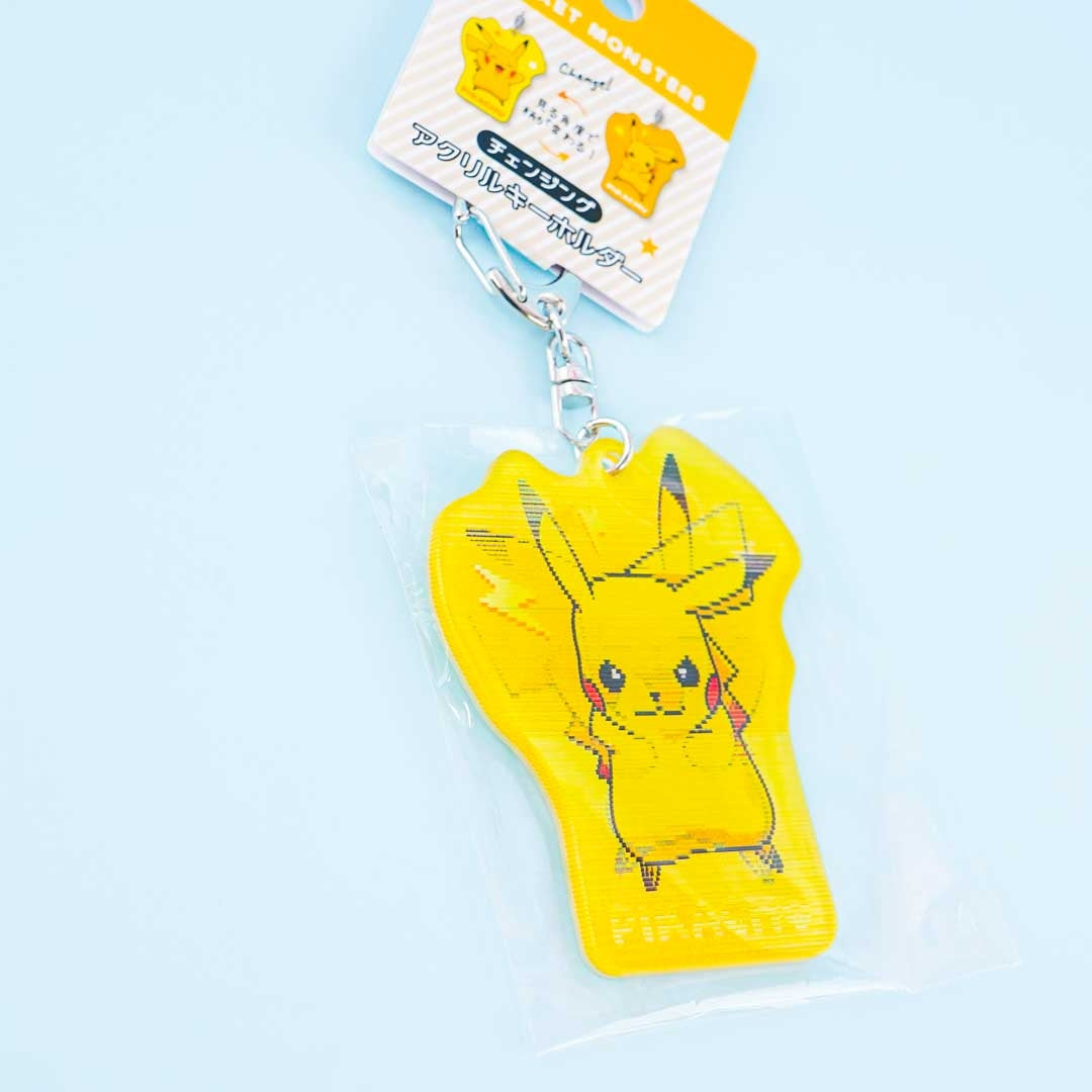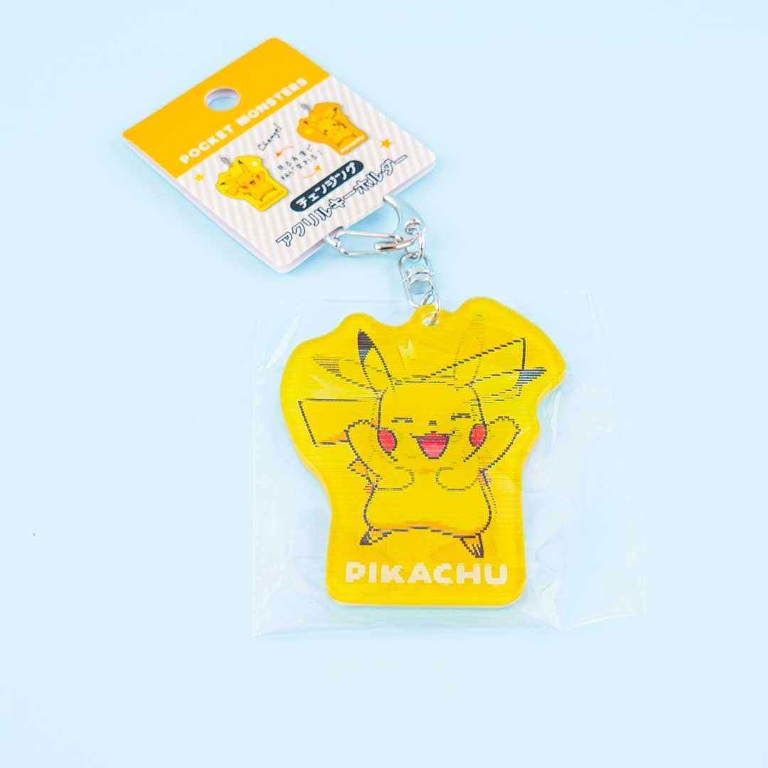 This super cute acrylic charm is illustrated with prints of Pikachu. It comes with a snap link and features different poses of Pikachu when viewed from different angles.