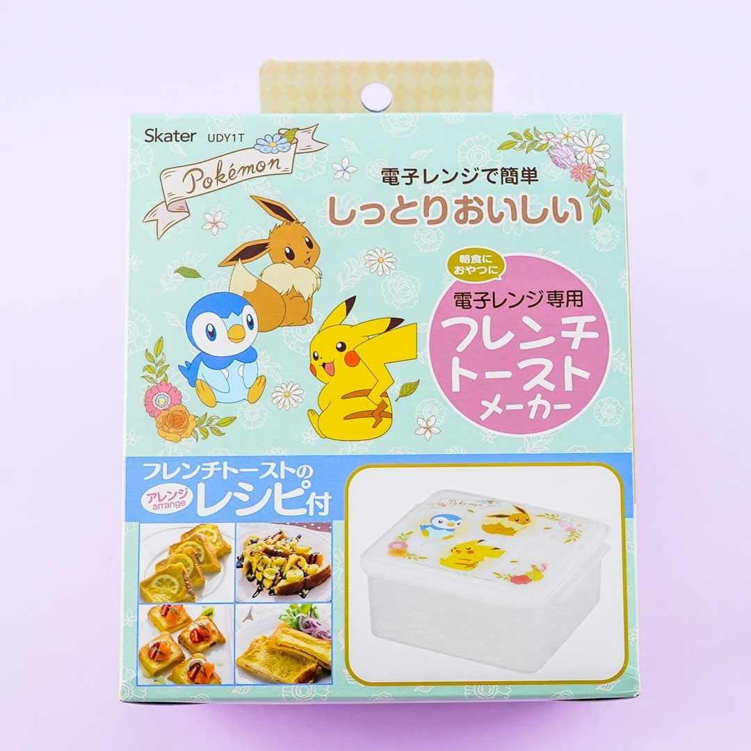 Make your own breakfast in the microwave with this french toast maker illustrated with Pokemon and flowers! Its lid has a switching valve for both heating and storage. Remember, this french toast maker is not safe to clean in the dish washer and dryer.