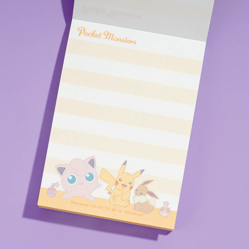 Enjoy scribbling short notes on this super cute notepad! It features kawaii illustrations of Pokemon gathered together.