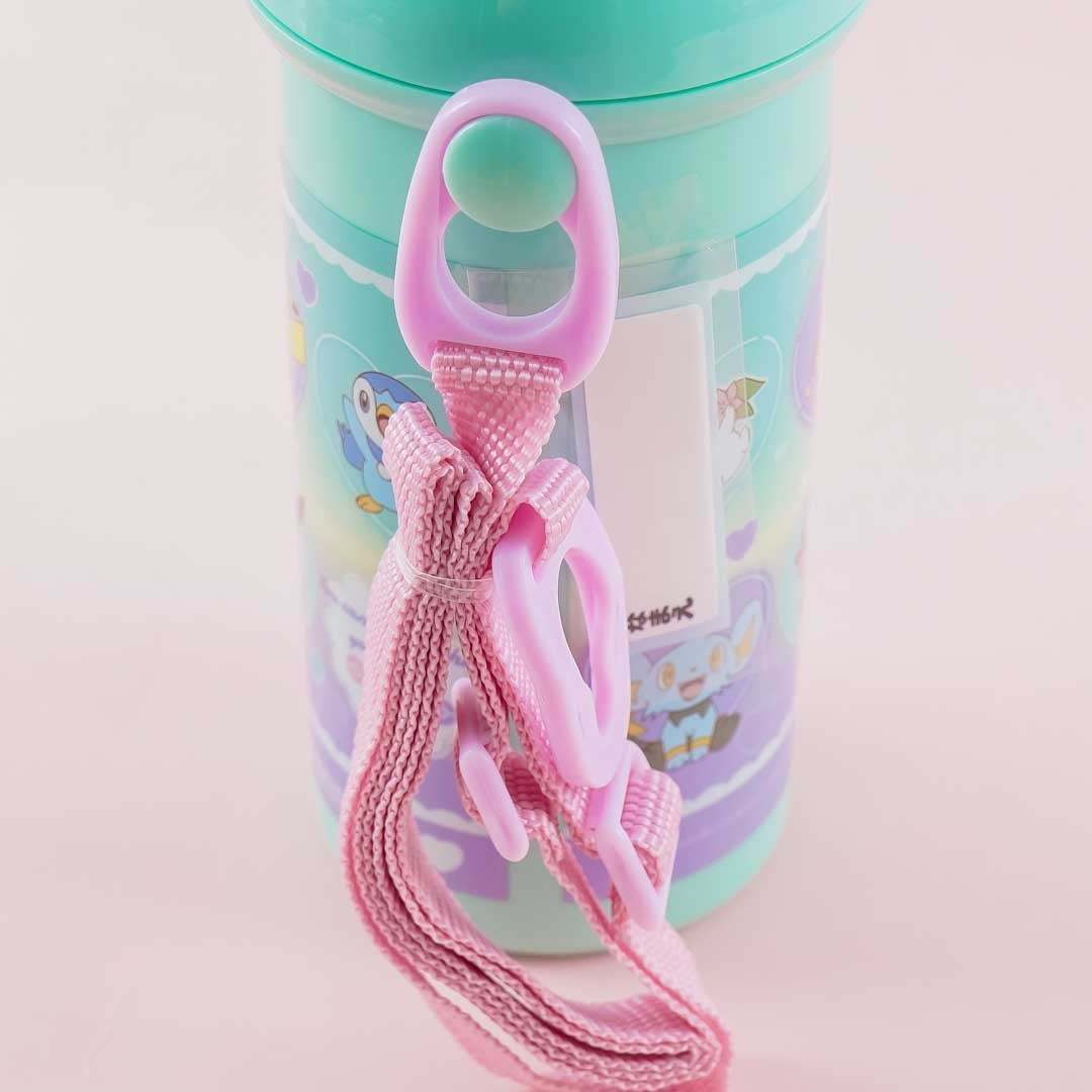 • A kawaii water bottle illustrated with Pokemon and hearts