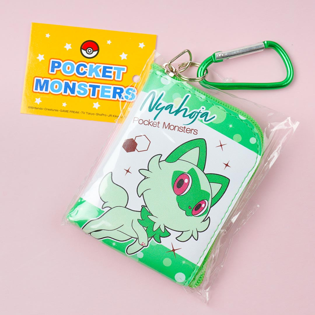 Bring your earphones anywhere with this cute mini pouch! It has an L-shaped zipper and a metal carabiner that can be attached to your bag. This pouch is decorated with kawaii illustrations of Sprigatito or Nyahoja!