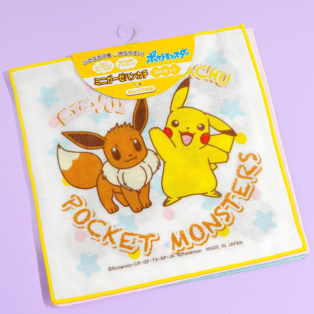 Pat your hands or face dry with this super cute set of mini handkerchief featuring the Pokemon characters Eeevee and Pikachu. It's made from soft cotton gauze so it's gentle on the skin.