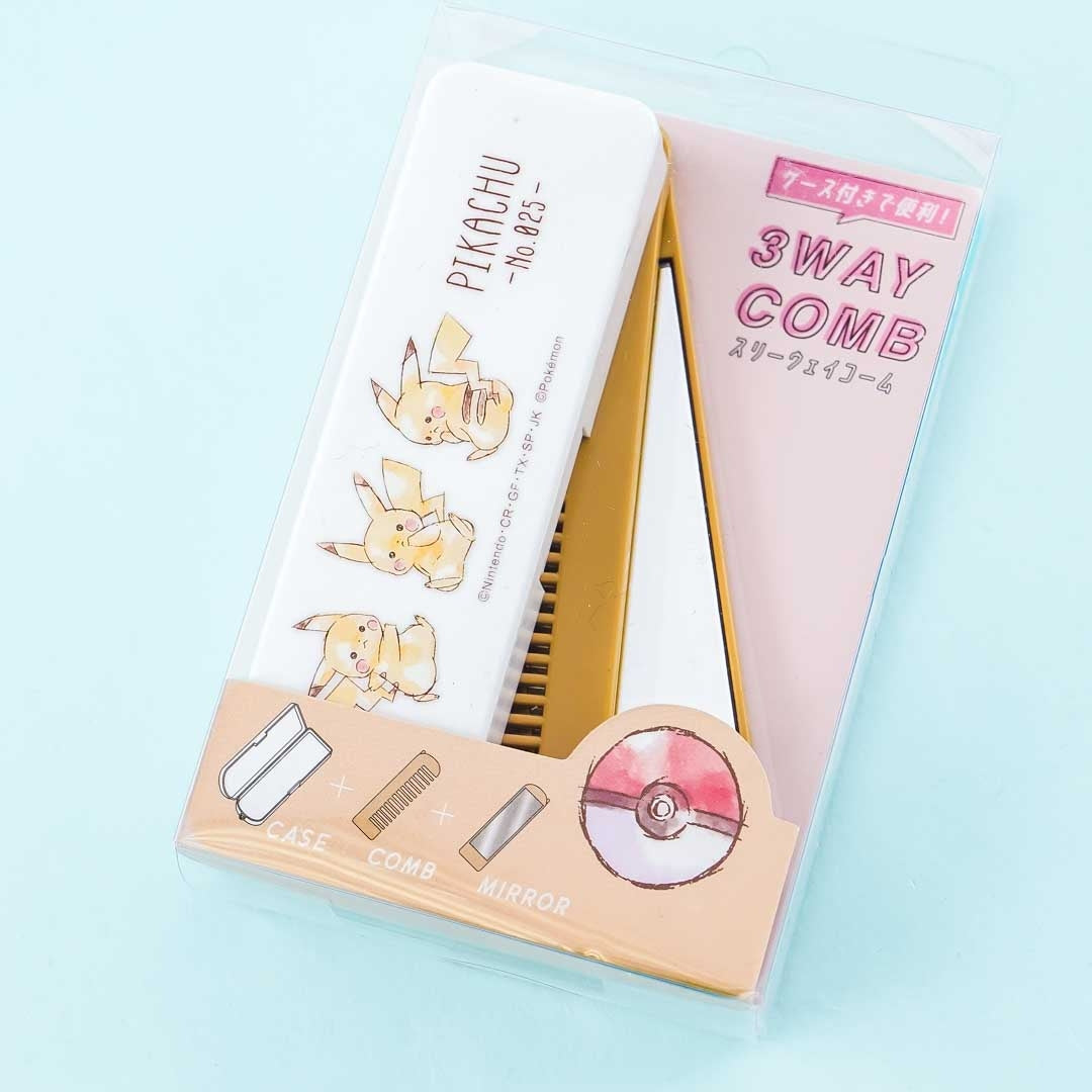 Bring this kawaii and handy comb set for quick touch-ups when you travel! The set features Pikachu and has a carrying case to hold your ties and pins. It also comes with a mirror, and a removable chain so you can easily attach it on your makeup purse.