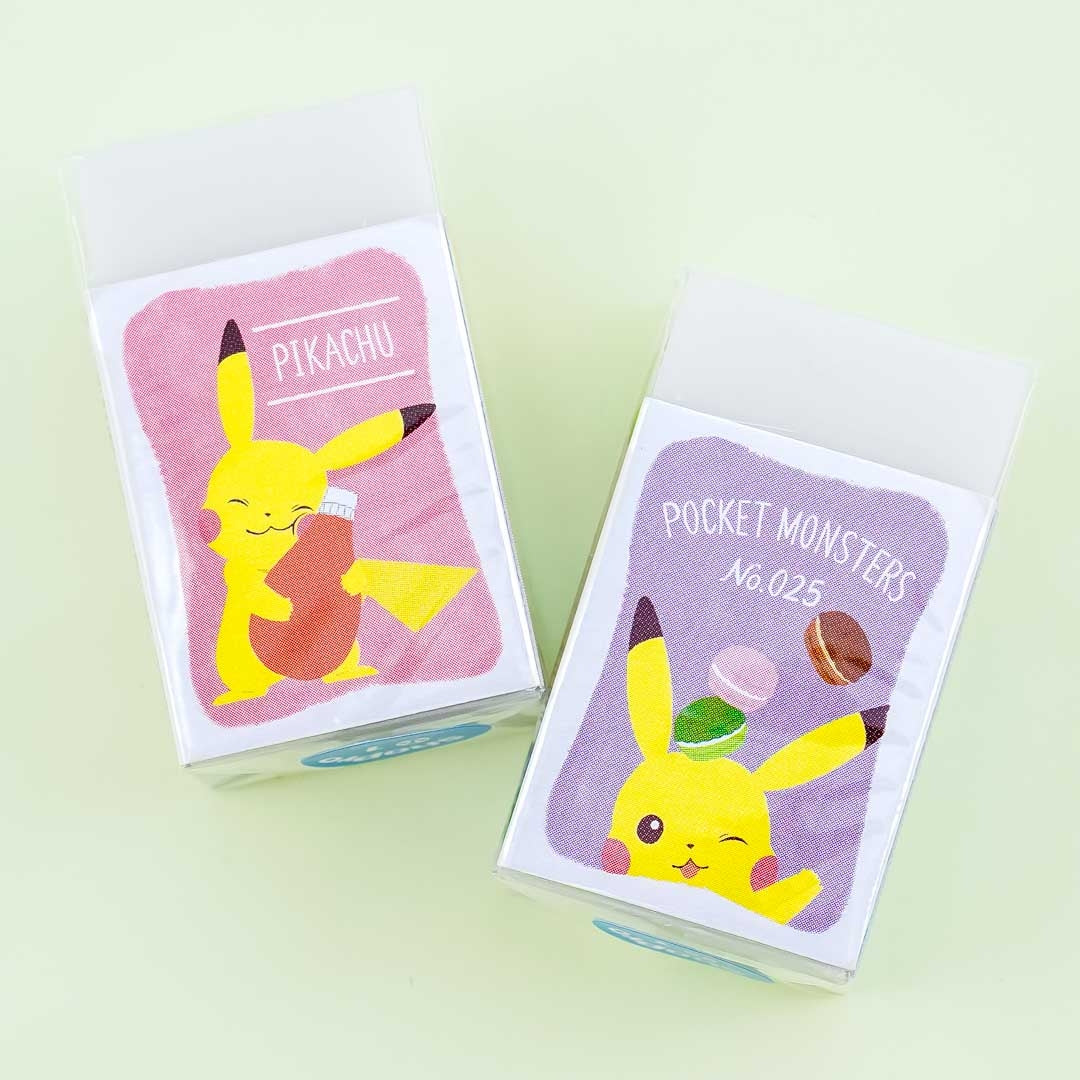 This handy eraser features a kawaii illustration of a Pikachu having fun while relaxing on the cover! Use this cute school item to keep your notes error-free. You’ll receive a random eraser design when you order!