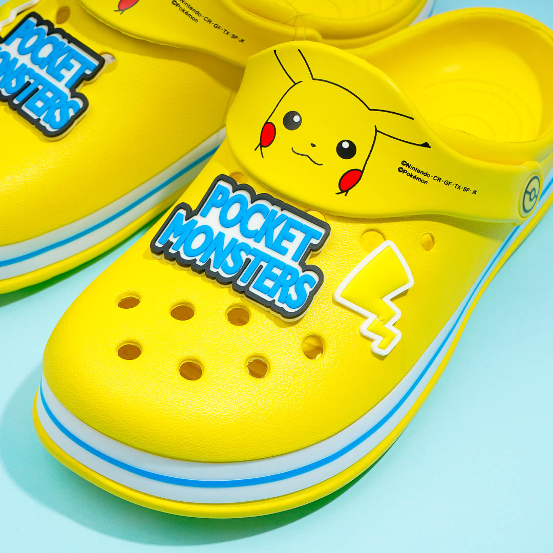Wear this cute and bright yellow pair to keep your feet clean and dry while indoors! The large sandals are illustrated with kawaii prints of Pikachu and decorated with rubber charms of Pikachu’s thunderbolt tail. These comfy slip-ons also have an adjustable strap that you can place either on the front or back.