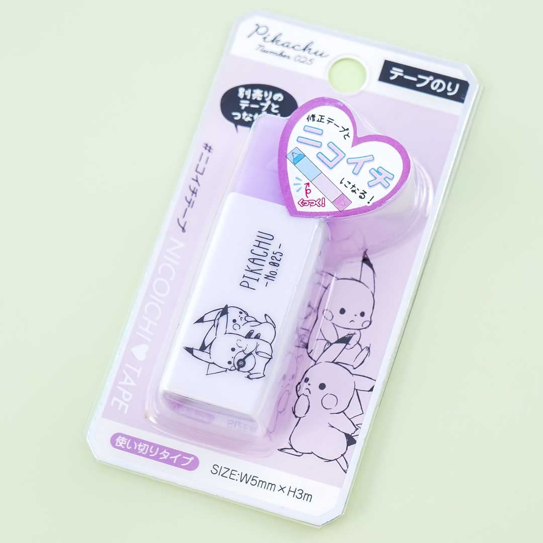 Use this kawaii correction tape featuring Pikachu holding a Poké Ball to erase those writing errors! It is enclosed in a special case called "nikoichi", a Japanese word that means "two parts become one", and can be attached to a glue tape dispenser from the same collection.
